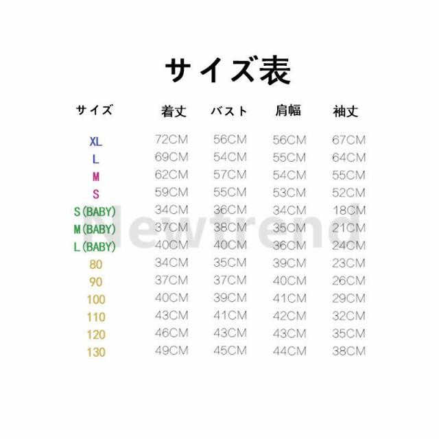 | サイズについての説明 | 長袖パーカー 春秋 家族揃い 親子 ペアルック パパ ママ キッズ親子服 ベビーロンパース カップル カジュアル スウェット親子セット 部屋着 注意事項 ◆サイズは、実寸を測っているため多少の誤差はございます。実商品とPC画面では、多少見た目の色に違いがございます。 |