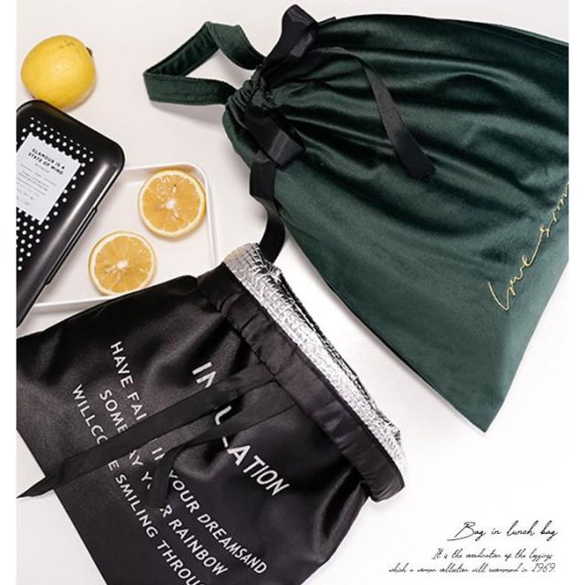 | 素材 | ベロア巾着:ポリエステル92%、ポリウレタン8% 保冷内袋:ポリエステル、アルミフィルム |