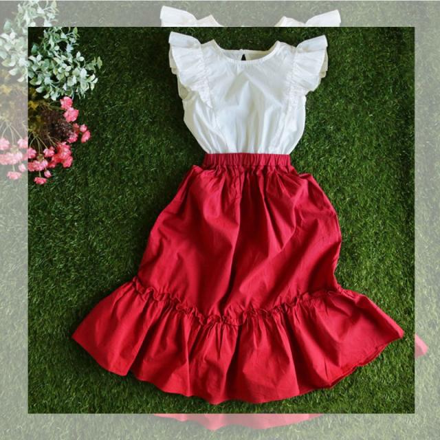 | サイズについての説明 | ■キーワード 子供服 女の子 ワンピース セットアップ ロングスカート ジュニア おしゃれ 可愛い お出かけ 親子ペア 春夏 120 130 140 150 160 165cm 製品説明 1枚でおしゃれに決まるワンピースです! 人気のレッドロング丈スカート。 ママとのお揃いコーデにも♪ ※こちらの商品はセットアップではなく一体型のワンピースになります。 |