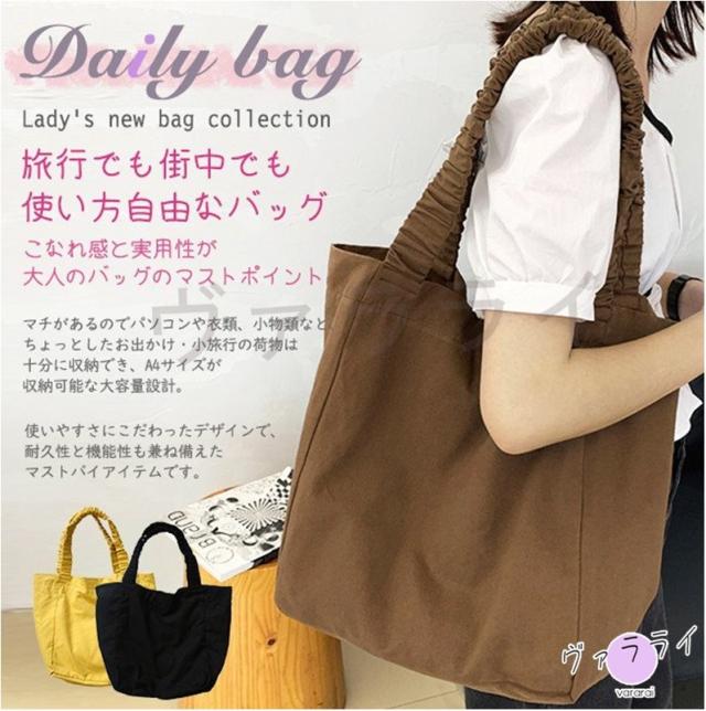 エコバッグ トートバッグ ゴムショルダーベルト マチあり 折りたたみ コンパクト 大容量 軽量 キャンバス 無地 レディース 買い物バッグ