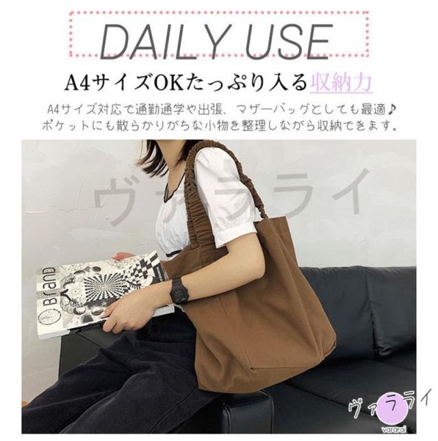| サイズについての説明 | 商品詳細 コーデにポイントがプラスできるレディースバッグ☆ 手持ち服に合わせやすいデザインで、 OLさんの通勤時からデイリーコーデまで、 幅広く使い回しOK◎ ■サイズ:30cm*14cm*32cm 注意: ※サイズ表記は目安です。誤差はご了承ください。 ※モニター環境や生産の関係により写真と色、柄が若干異なる場合があります。 ※記載のないアクセサリー、小物等は付属しません ※商品は素材特有の臭いや接着剤等の臭いが残っている場合がございますので、 気になるお客様はご購入をお控え下さい。 |