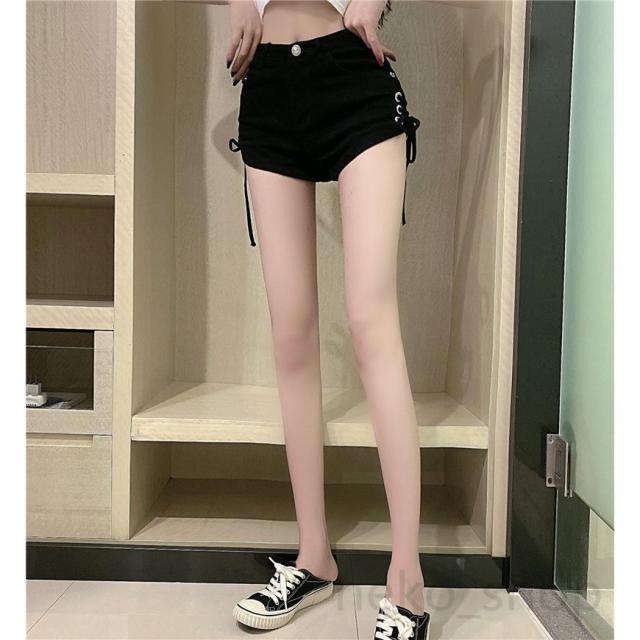 デニムパンツ ショートパンツ ミニパンツ レディース セクシー 短パン ホットパンツ ジーンズ レースアップ ボトムス 美尻 スタイリッシュ 脚長 ダンス 2色