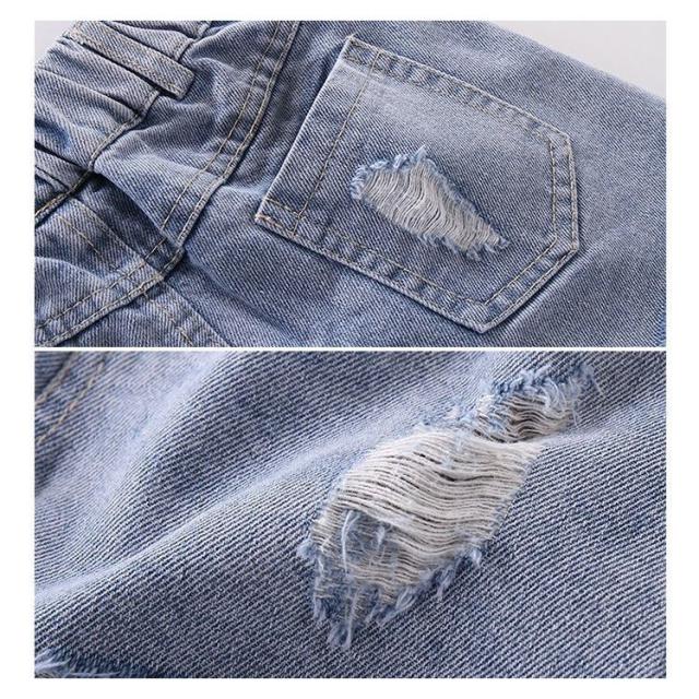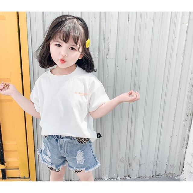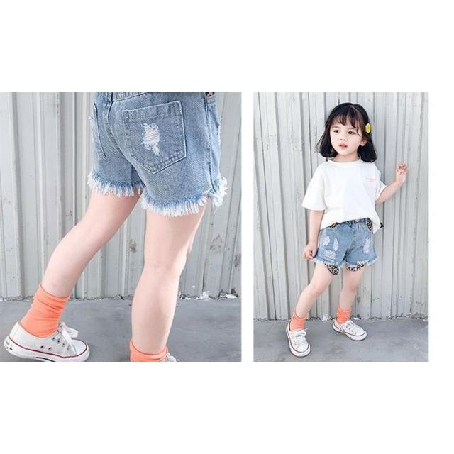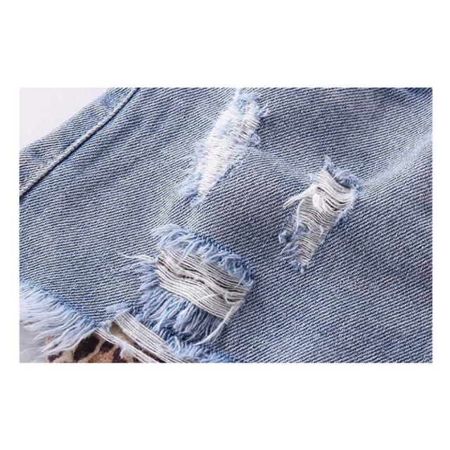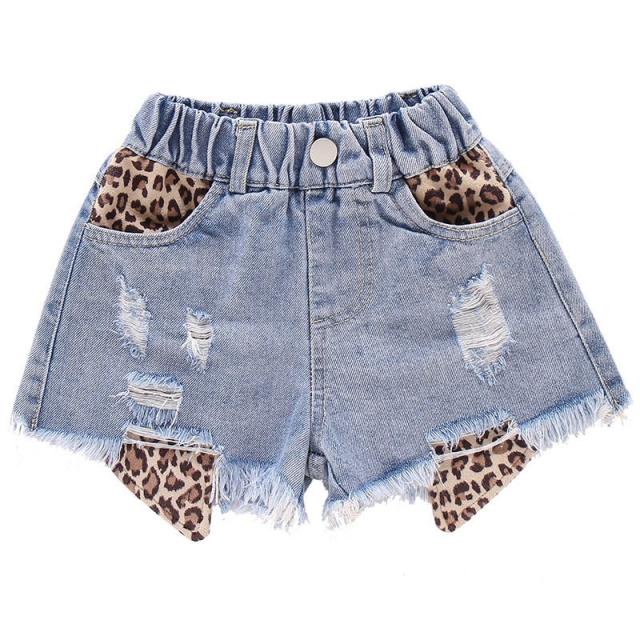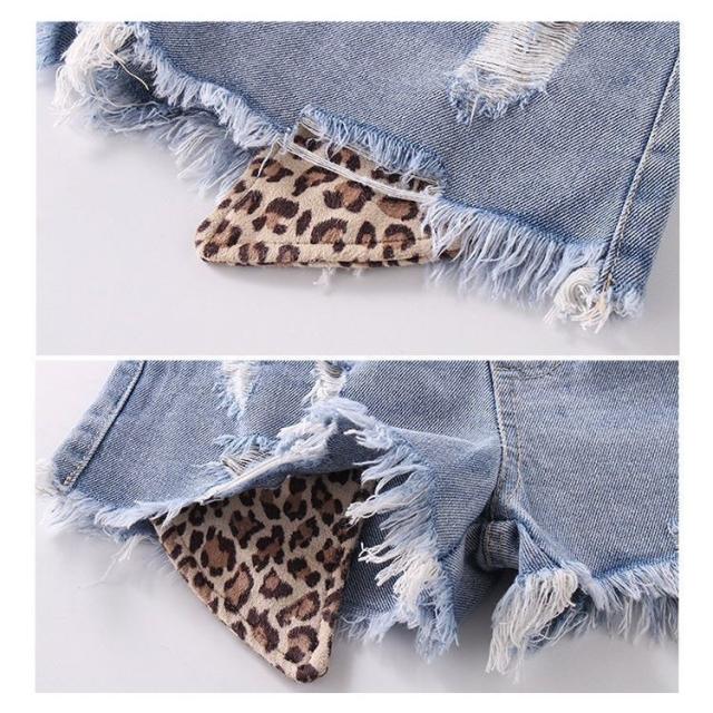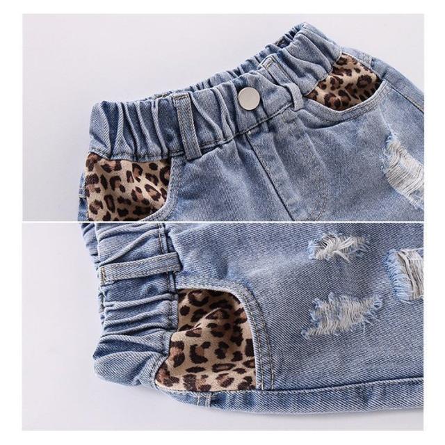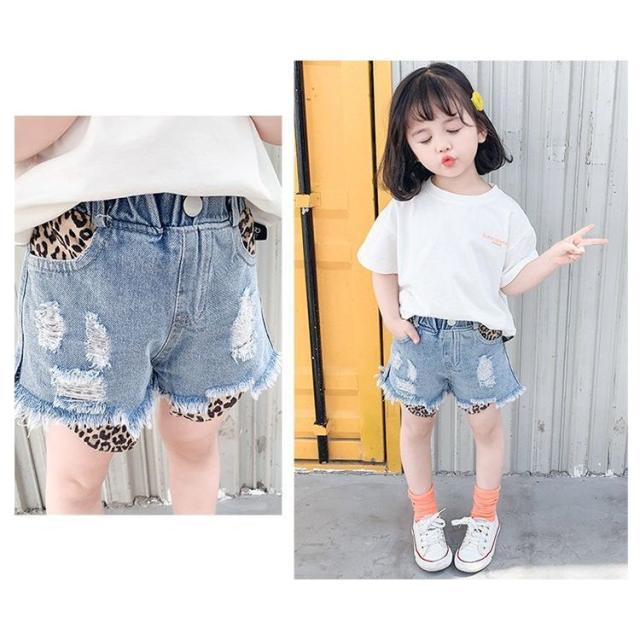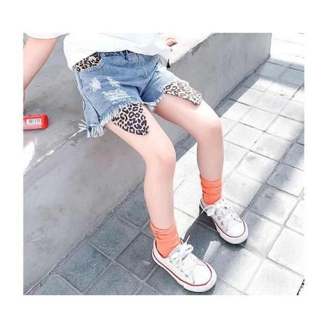 ショートパンツ 短パン 半ズボン デニム ダメージ加工 ヒョウ柄 レオパード キッズ 女の子 男の子 おしゃれ クール カットオフ ウエストゴム 切り