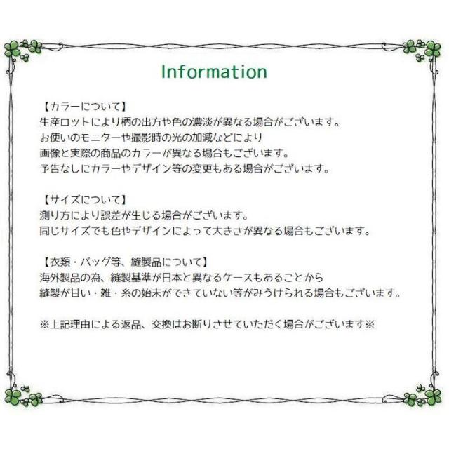 | ●サイズ詳細等の測り方はスタッフ間で統一、徹底はしておりますが、実寸は商品によって若干の誤差(1cm〜3cm )がある場合がございますので、予めご了承ください。 ●製造ロットにより、細部形状の違いや、同色でも色味に多少の誤差が生じます。 ●パッケージは改良のため予告なく仕様を変更する場合があります。 ▼商品の色は、撮影時の光や、お客様のモニターの色具合などにより、実際の商品と異なる場合がございます。あらかじめ、ご了承ください。 ▼生地の特性上、やや匂いが強く感じられるものもございます。数日のご使用や陰干しなどで気になる匂いはほとんど感じられなくなります。 ▼同じ商品でも生産時期により形やサイズ、カラーに多少の誤差が生じる場合もございます。 ▼他店舗でも在庫を共有して販売をしている為、受注後欠品となる場合もございます。予め、ご了承お願い申し上げます。 ▼出荷前に全て検品を行っておりますが、万が一商品に不具合があった場合は、お問い合わせフォームまたはメールよりご連絡頂けます様お願い申し上げます。速やかに対応致しますのでご安心ください。 | |