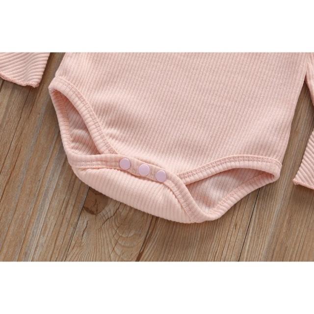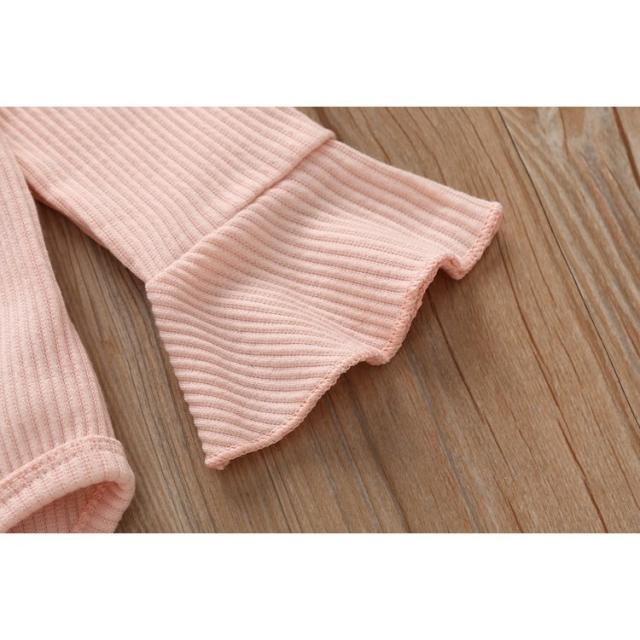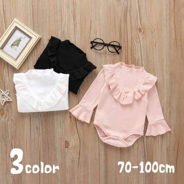 ロンパース ベビー 赤ちゃん キッズ 子供 長袖 股開き フリル フレアスリーブ リブ シンプル 無地 スナップボタン かわいい
