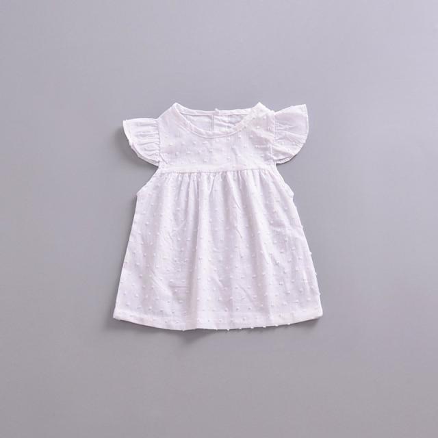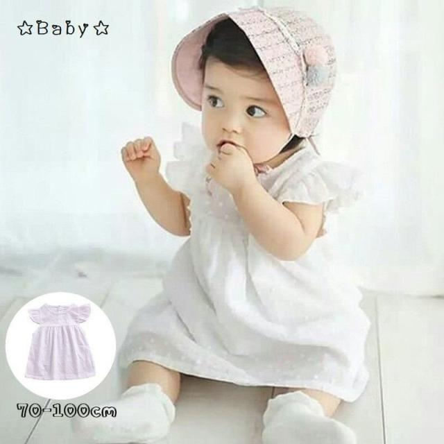 ワンピース ベビー 女の子 半袖 袖フリル シンプル 無地 春 夏 かわいい おしゃれ ホワイト フォーマル 普段着 お祝い 記念日 ギフト プレゼン
