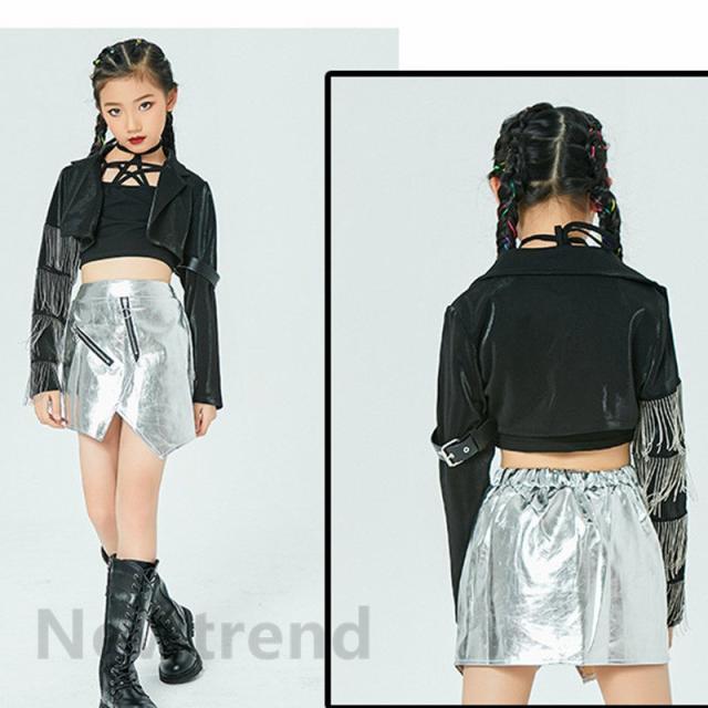 キッズダンス衣装 ヒップホップ 2点セットアップ HIPHOP 半袖 シャン パンツ 女の子 子供服 ジャズダンス ステージ衣装 スカート