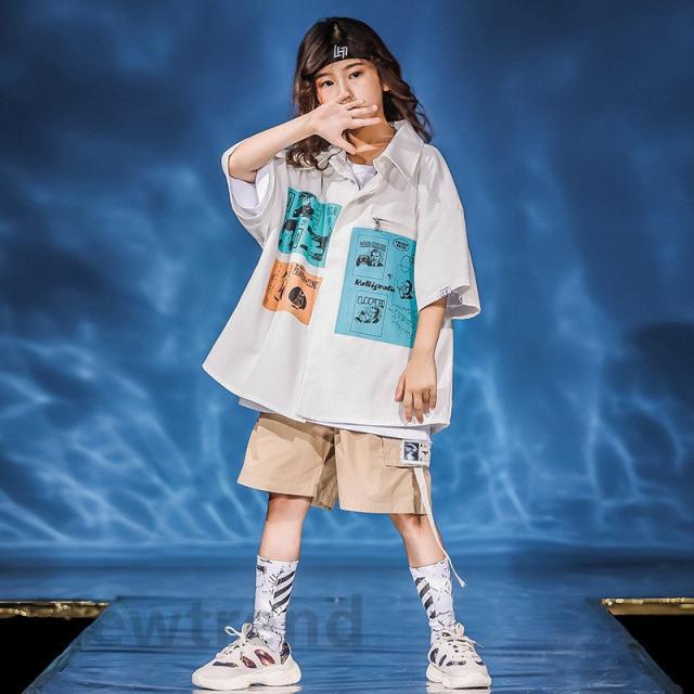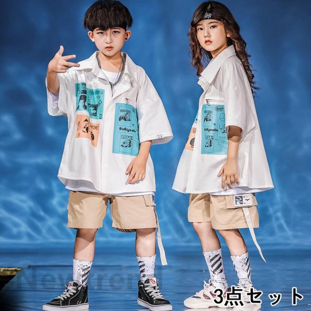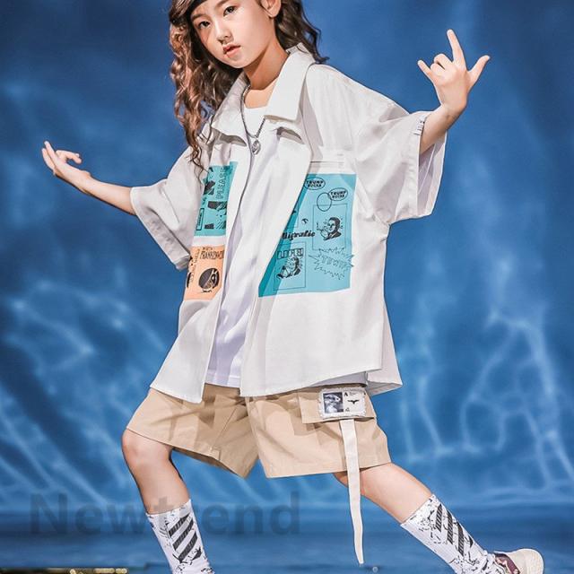 キッズダンス衣装 ヒップホップ セットアップ HIPHOP 半袖 シャン パンツ 女の子 子供服 ジャズダンス ステージ衣装 パーカー