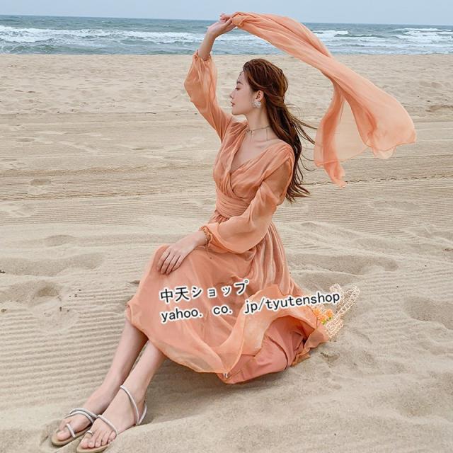 リゾートワンピース シフォンワンピース レディース 20代 30代 40代 ビーチ マキシワンピース ファッション セクシー Vネック お呼ばれ 旅行 大人 カジュアル