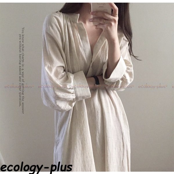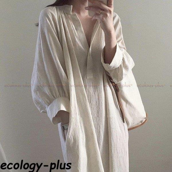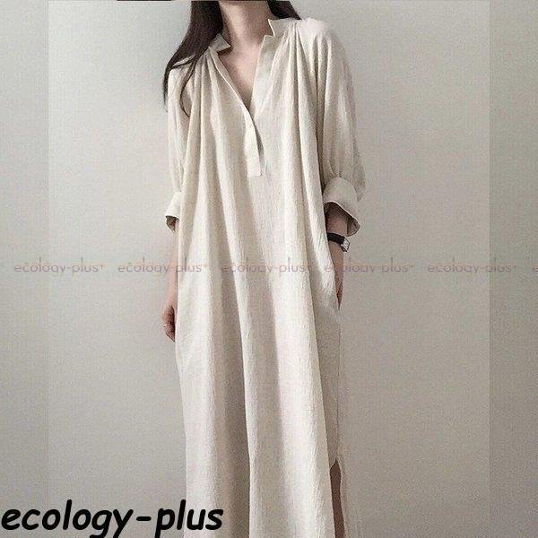 シャツワンピース ロング 白 春 長袖 秋 50代 40代 トップス レディース コーデ 七文袖 とろみ ミモレ丈 サイドスリット