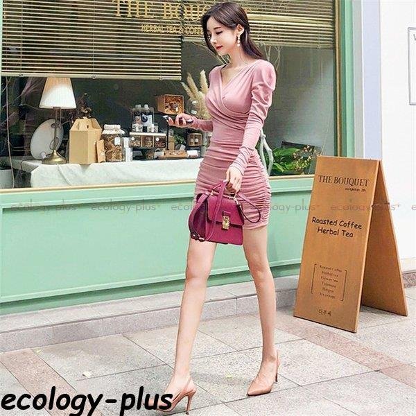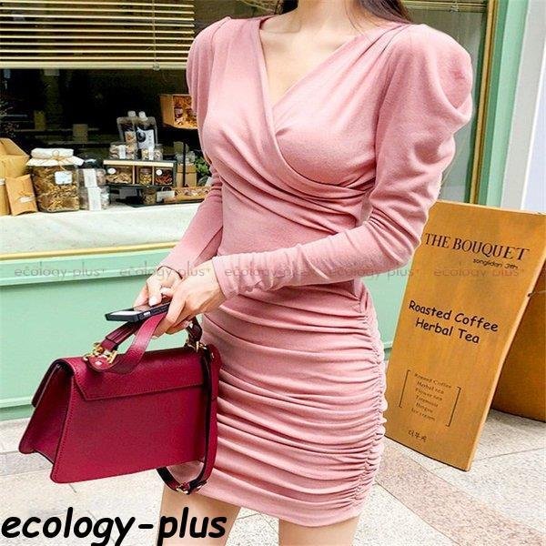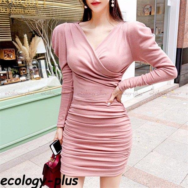 Vネック ラップタイプドレス フィット感 ドレス ワンピ ワンピース 無地 シンプル シック 大人 上品 モノトーン