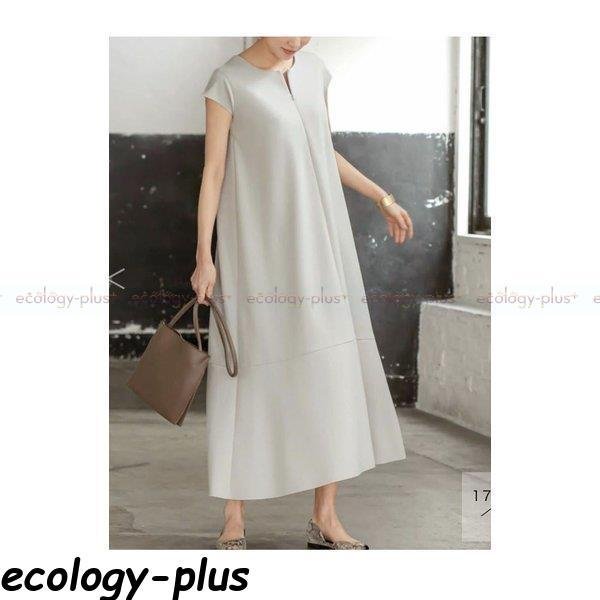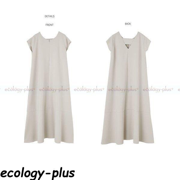 マキシワンピース 40代 春夏 半袖 韓国風 ロング丈 無地 ベルト付き 体型カバー Aライン ソリッドカラー 通勤 OL 着痩せ 大人 上品 Vネック 結婚式 無地 着痩せ