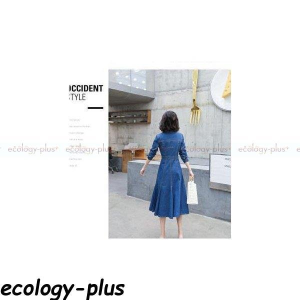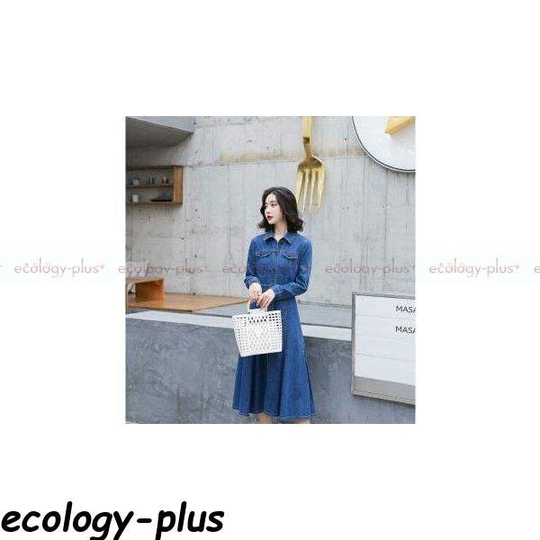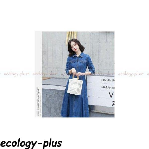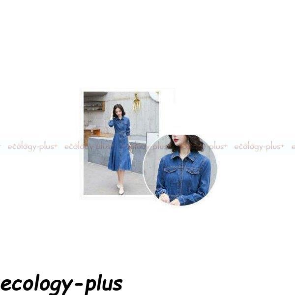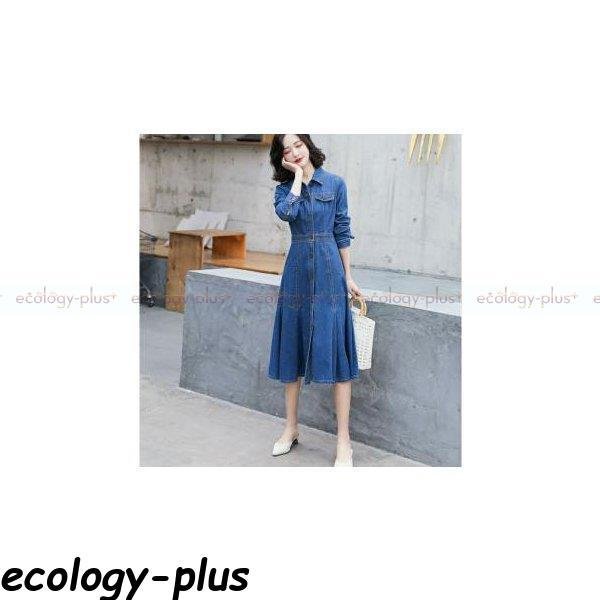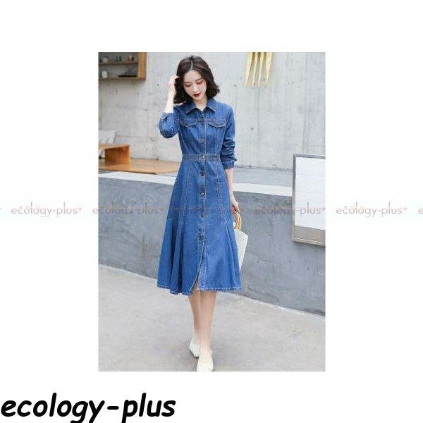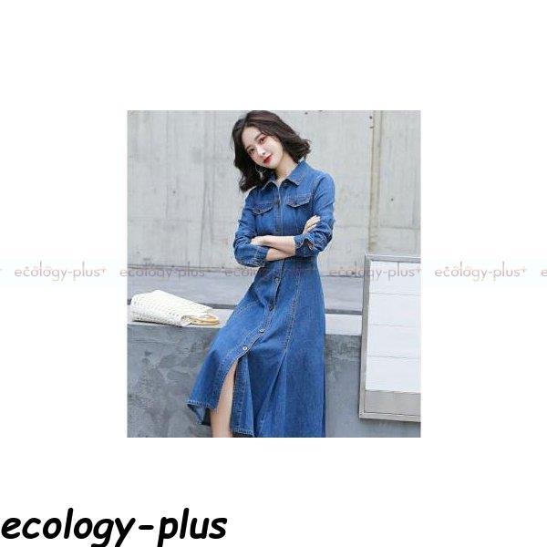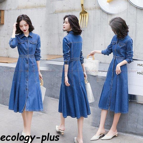 デニムワンピース ロン丈 長袖 レディース ワンピース デニム シャツワンピース aライン 前開け 体型カバー 着痩せ お洒落 秋服 秋コーデ 30代 40代