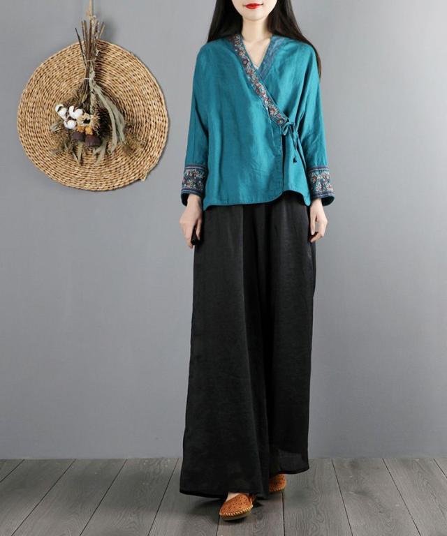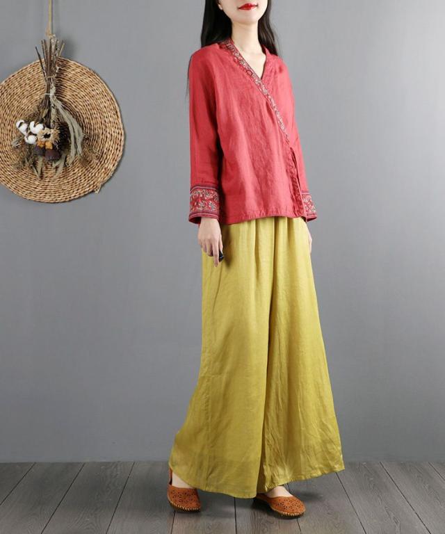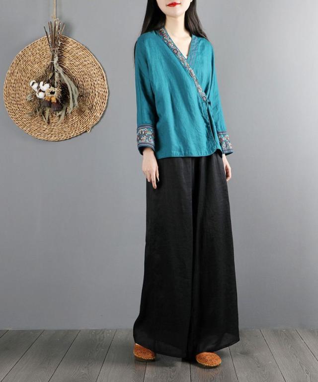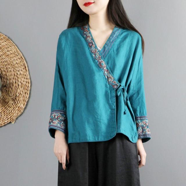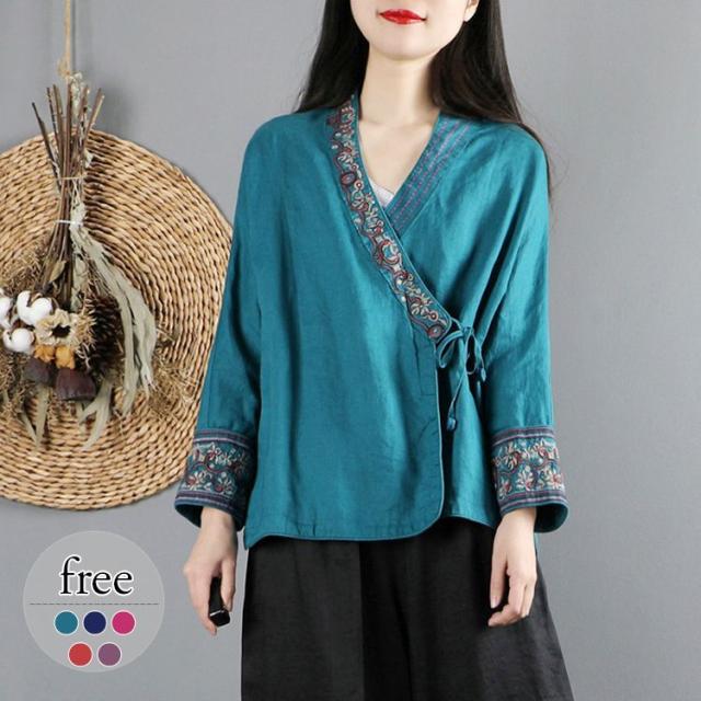 シャツ トップス 総柄 カシュクール 袖デザイン モダン 甘め 刺繍 可愛い リゾート ママスタイル 休日 デート お出かけファッション /[oib55]
