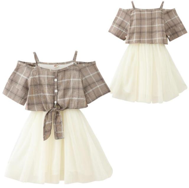 女の子 ワンピース スカート カジュアル 韓国 服 女の子 子供服 チェック柄 結婚式 セレモニードレス 夏 発表会 110 150 160 プレゼント 誕生日 ギフト