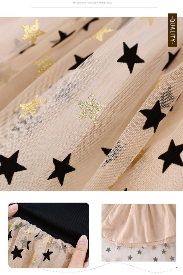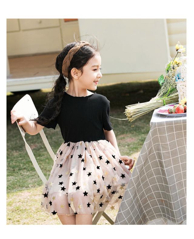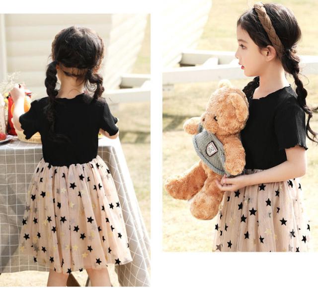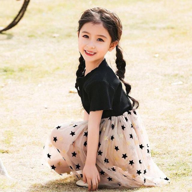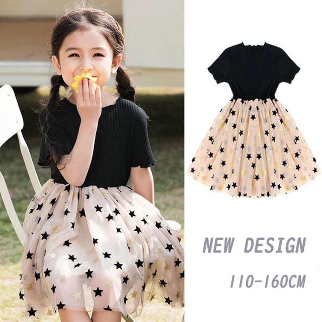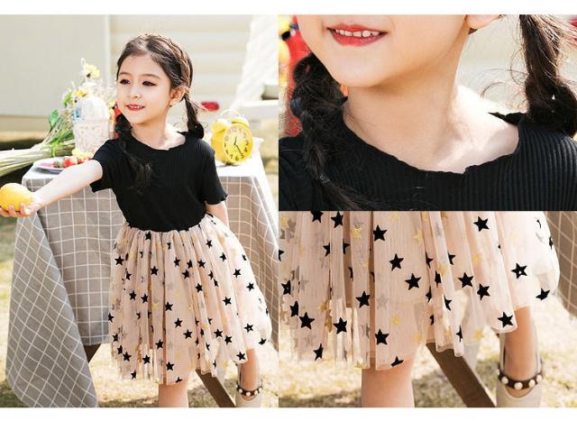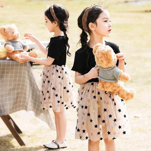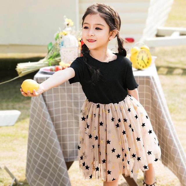 女の子 キッズ ワンピース スカート ピアノ発表会 カジュアル キラキラ 結婚式 セレモニードレス 夏 発表会 舞台 衣装 星柄 110 160 プレゼント 誕生日 ギフト