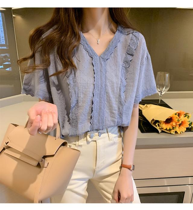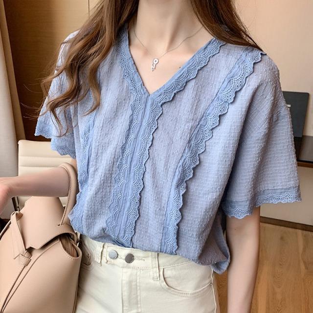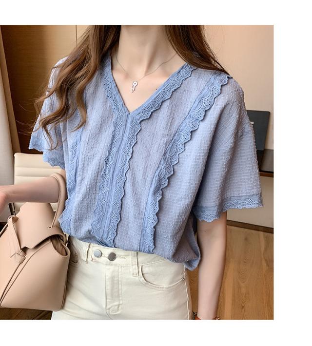 ブラウス レディース 40代 春夏新作 オシャレブラウス レースシャツ 半袖トップス vネック 上品 大人 通勤OL ゆったり シャツ30代 50代