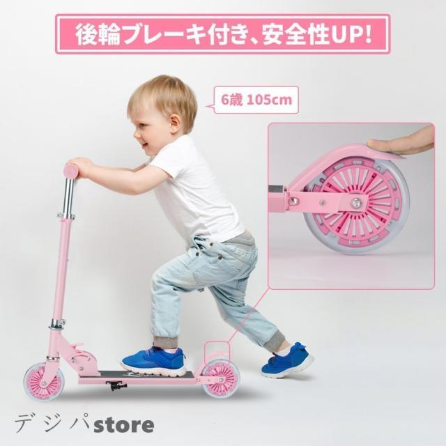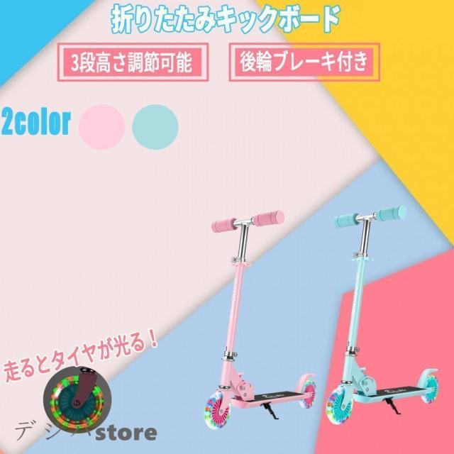 キックスクーター 子供用 キックボード LED 光るホイール 高さ3段調節可能 ブレーキ付き 3歳から おもちゃ