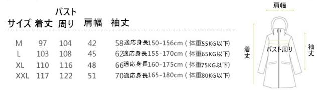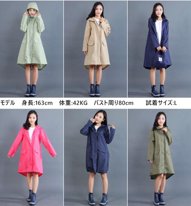 | サイズについての説明 | カラー:カーキ、ネイビー、グリーン、ネイビー(水玉柄)、ピンク、海松色、藍色付属品:収納袋耐摩耗性に優れたポリエステル素材を使用し、表面には撥水加工を施し、丈夫で撥水性も抜群です。サッとかぶれるフード付き、裾が絞れてふんわり女の子シエウエット。テフロン材質でコーティングして、撥水加工が施されていますので、軽く振るだけで水が落ちます。軽い:重さは約220g、軽くて着いていないような感じ、通気性も抜群、蒸す暑くないです。カバンに入れることができます。風の強い日や豪雨の時に、レインウェアが体にまとわりついたり、捲りあがるのを防ぎます。使用範囲:通勤、通学、旅行のパートナー、スポッツ観戦、ペット散歩、梅雨の日もらくらく出かけて、ショッピングしましょう。※測量器具などにより1〜3cmの誤差がある場合がございます。※環境により、多少色合いが異なる場合がございますが、ご了承の上ご注文お願い致します。 |