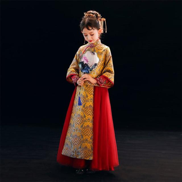 チャイナドレス キッズ ワンピース ドレス 入学式 姫系 演出服 女の子 漢服 子供用 古代 チャイナ風 刺繍 写真撮影 イベント 仙女 子供 ドレス 100-160cm