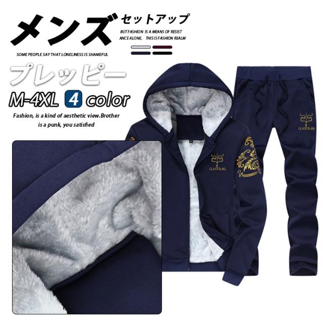 スウェット ジャージ メンズ 裏起毛 セットアップ 2点セット ジャージパンツ ボア おしゃれ 長袖 カジュアル秋冬 韓国風 4色 スポーツ