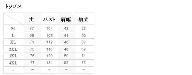 | サイズ | M L XL 2XL 3XL 4XL |