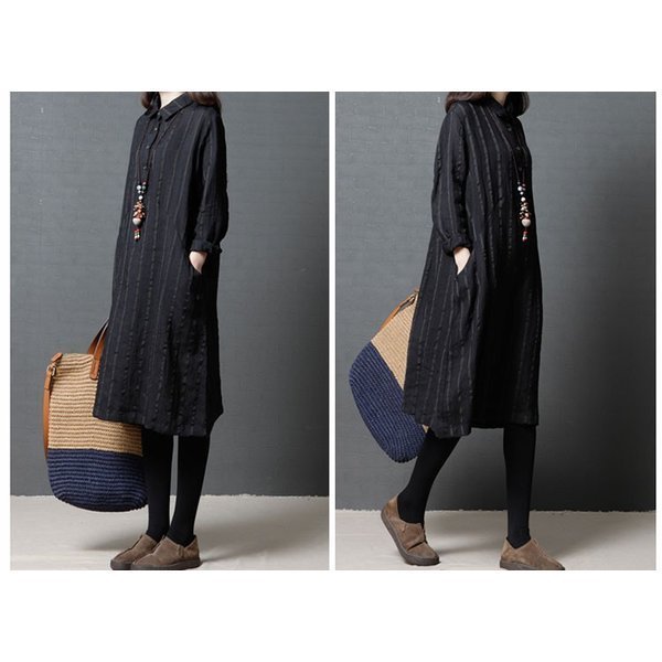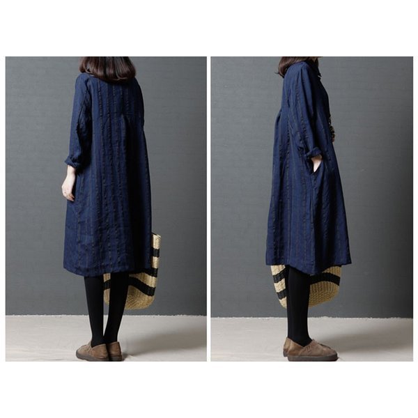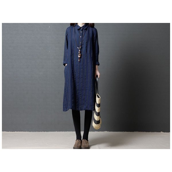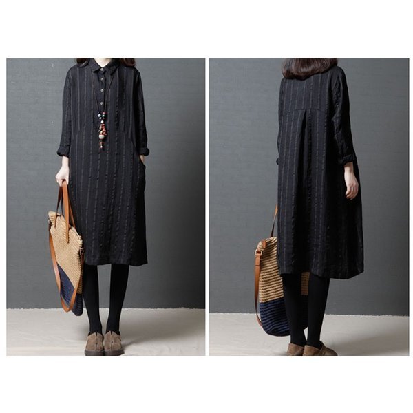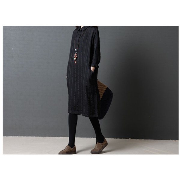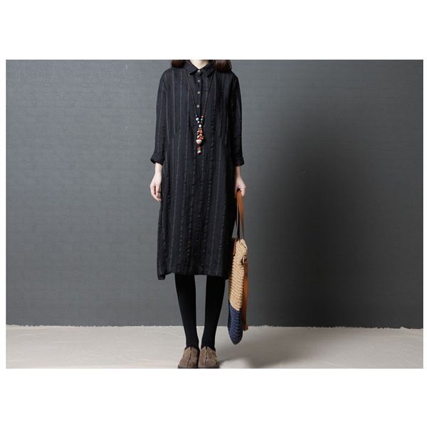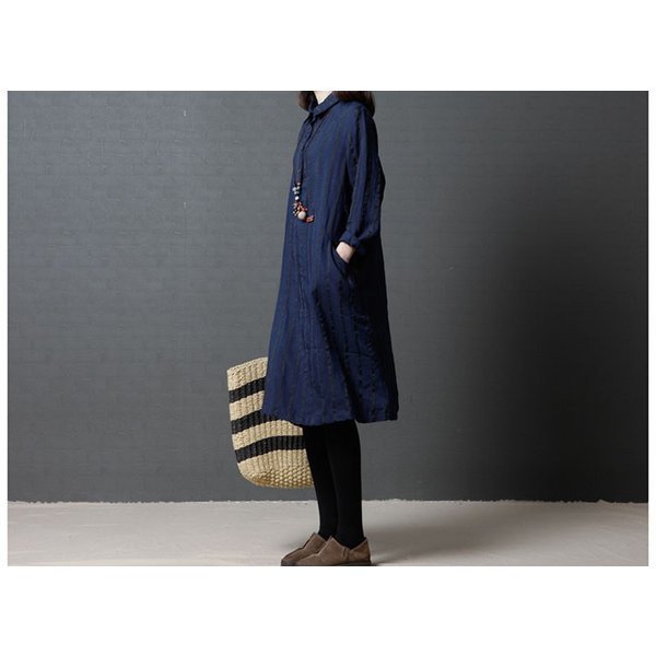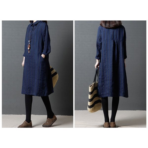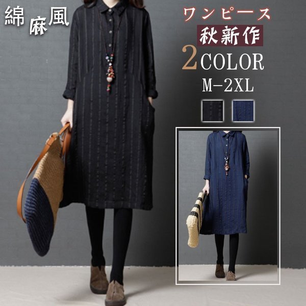 ワンピース レディース ストライプ カジュアル シャツワンピ 長袖 秋冬 着痩せ ひざ丈 シャツワンピ 通勤 20代 30代 40代 ポイント消化