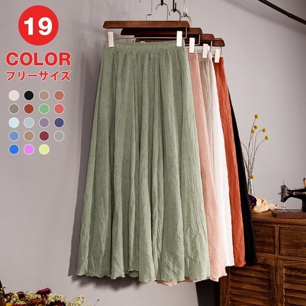 ロングスカート マキシ丈 レディース ふんわり 広幅 マキシスカート 森ガール シンプル 可愛い セレブ ポイント消化