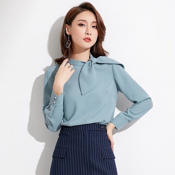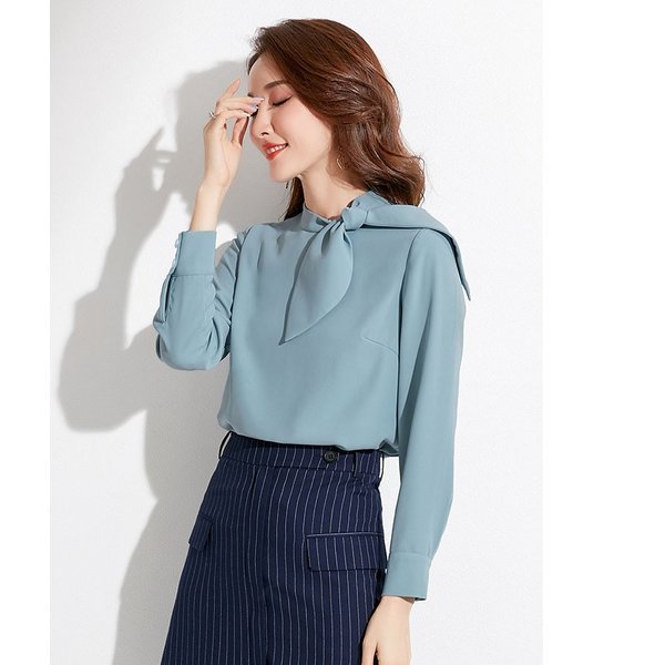 シャツ ブラウス トップス レディース 長袖 リボン結び ワイシャツ シフォン 春秋 通勤通学 スクールシャツ ポイント消化