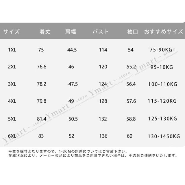 | サイズ | XL 2XL 3XL 4XL 5XL 6XL |