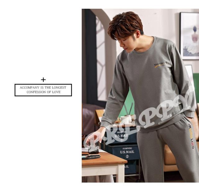 パジャマ メンズ ナイトウェア ルームウェア 部屋着 綿 長袖 セットアップ シンプル おしゃれ 2019 新作