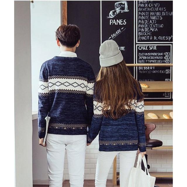 新作ニット 薄手 セーター ペアルック カップル レディース メンズ 長袖 ご夫婦 上着 旅行ペアシャツ 全3色