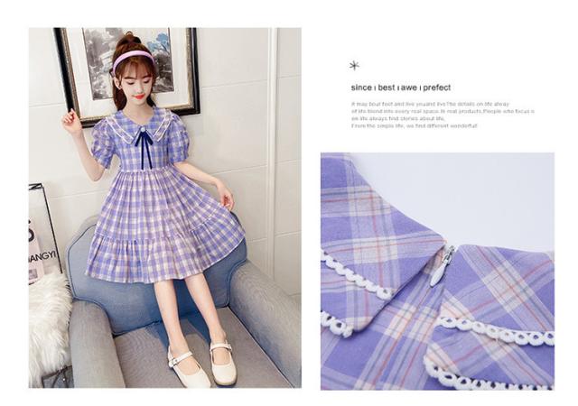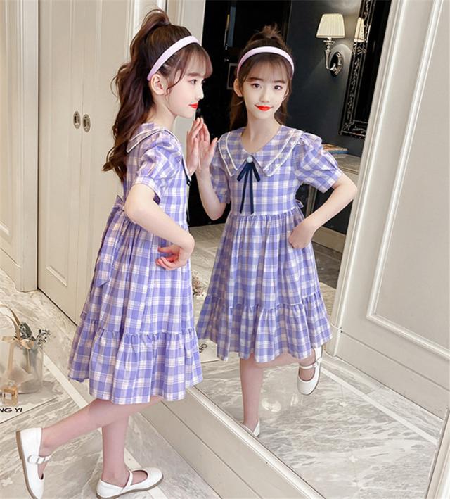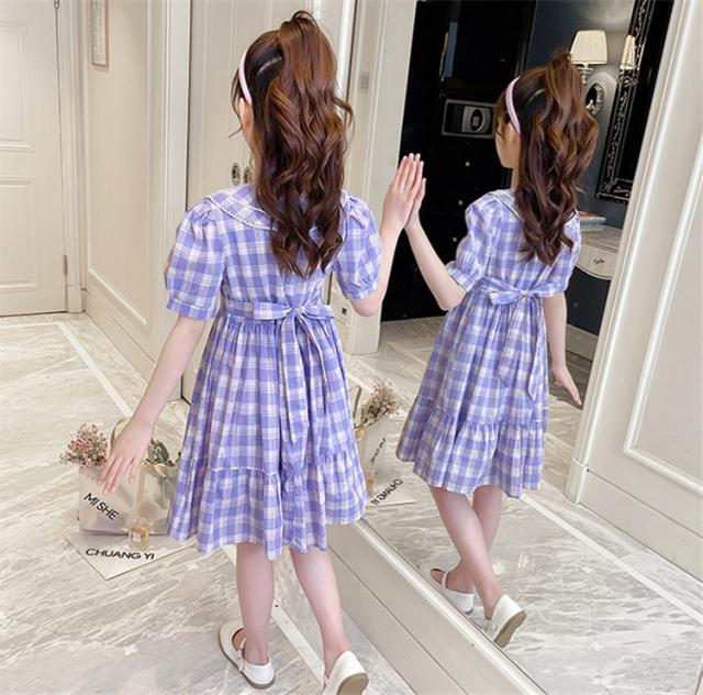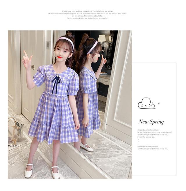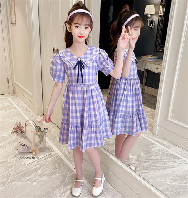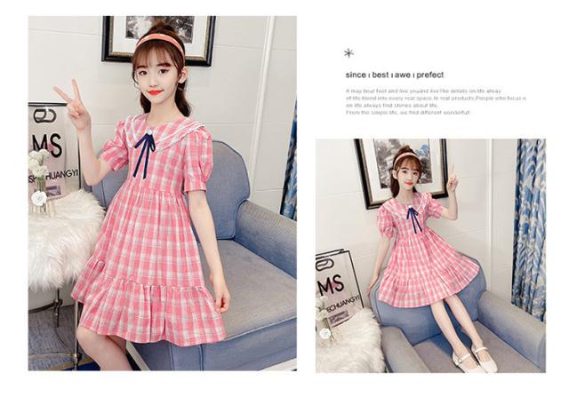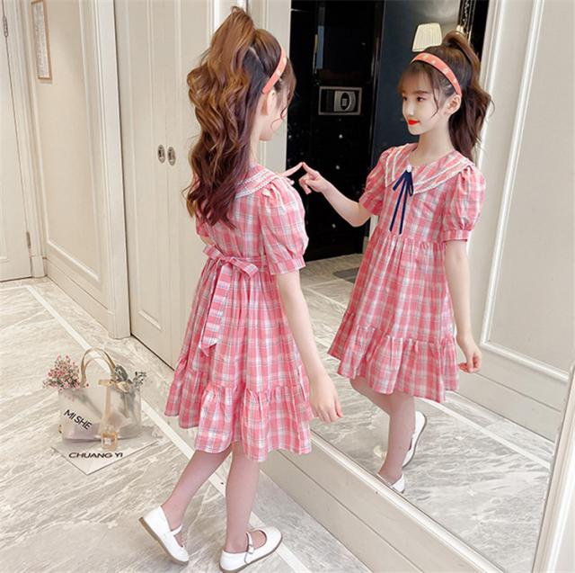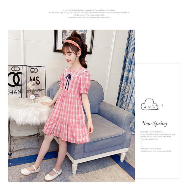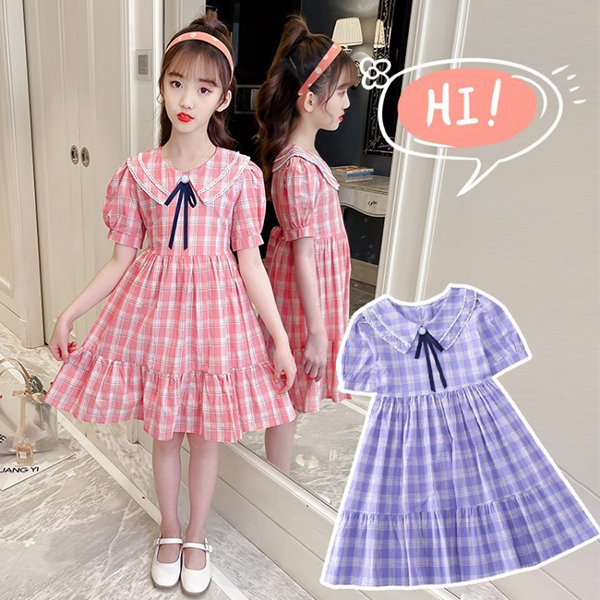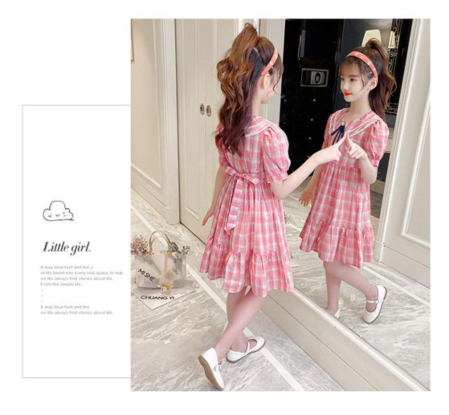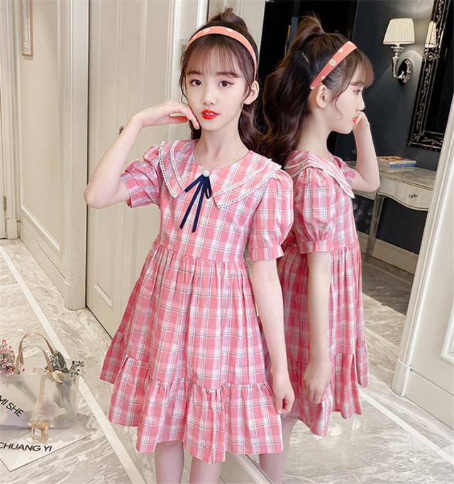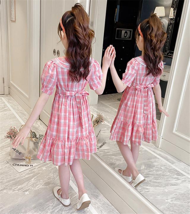子供服 ワンピース ピンク 160 韓国子ども服 キッズ 女の子 夏 半袖ワンピース チェック柄 子供ドレス 結婚式 誕生日 ベビー服 ジュニア お姫様 おしゃれ 可愛い