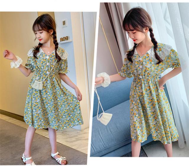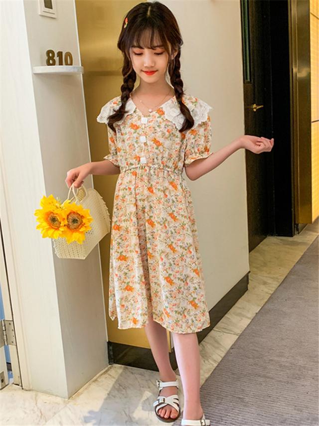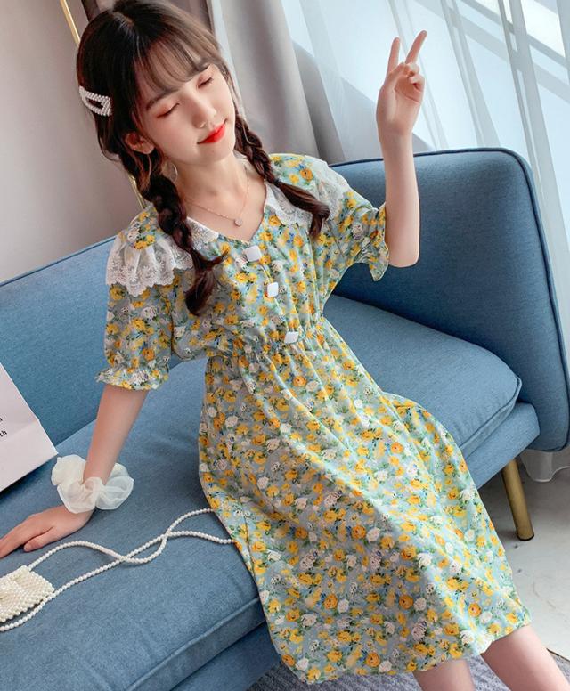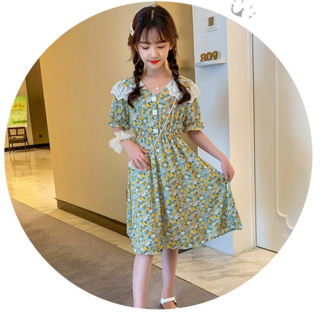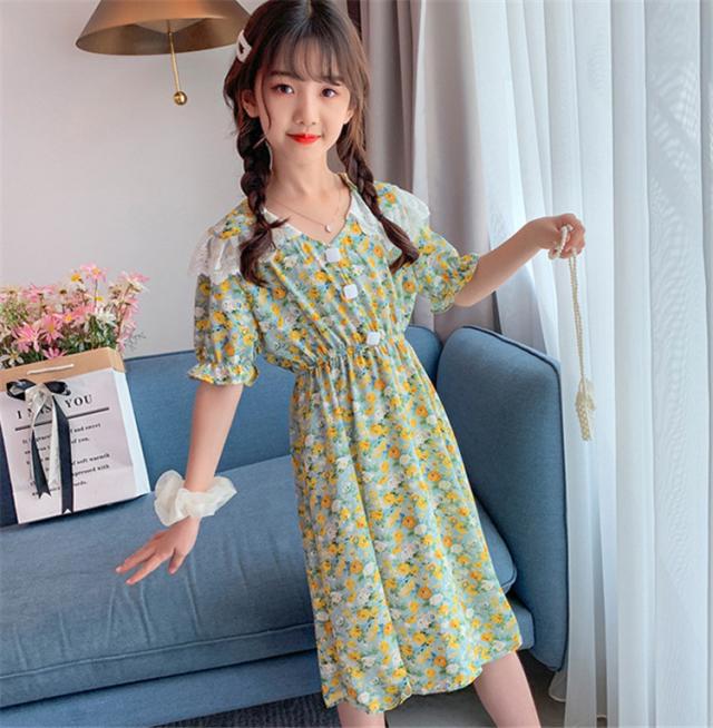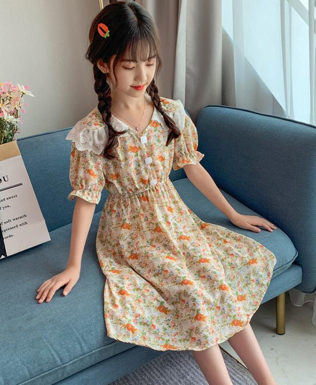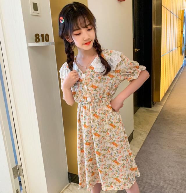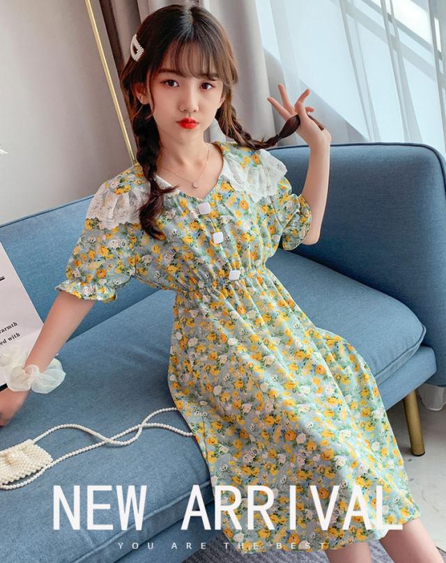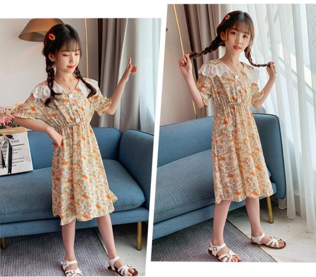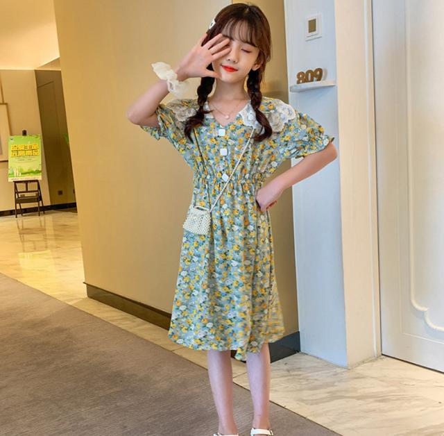 子供服 ワンピース 160 韓国子ども服 キッズ 女の子 夏服 半袖ワンピース 花柄 シフォン 子供ドレス 結婚式 誕生日 ベビー服 ジュニア お姫様 おしゃれ 可愛い