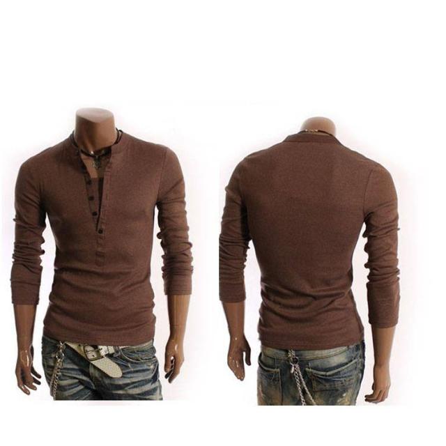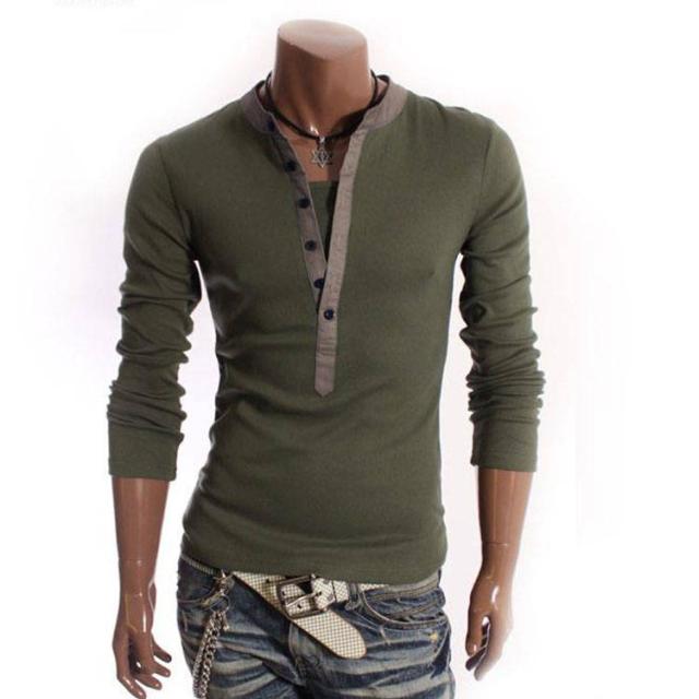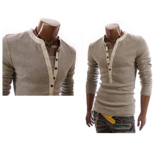 長袖Tシャツ メンズTシャツ 重ね着風Tシャツ カジュアルTシャツ インナーTシャツ フェイクレイヤード Vネック ヘンリーネック オシャレ