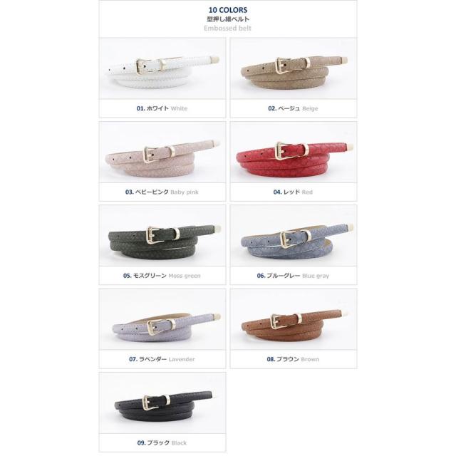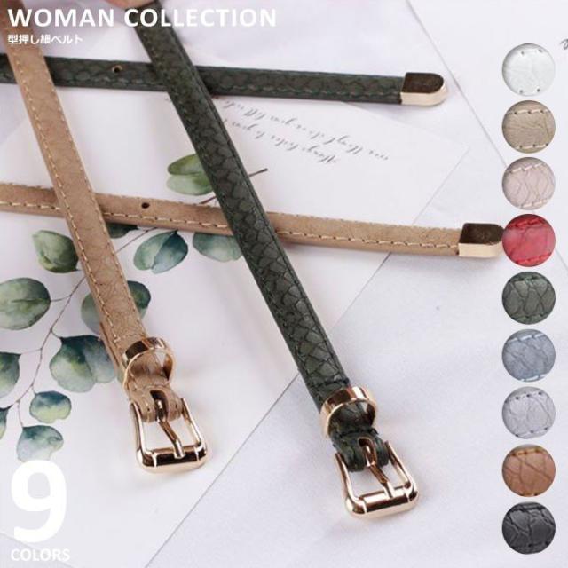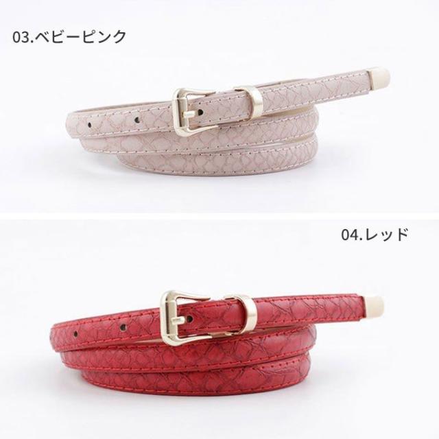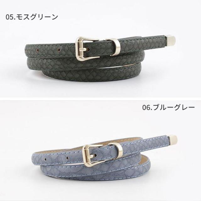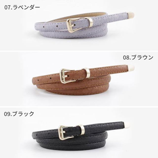 ベルト レディース 細 クロコ 型押し