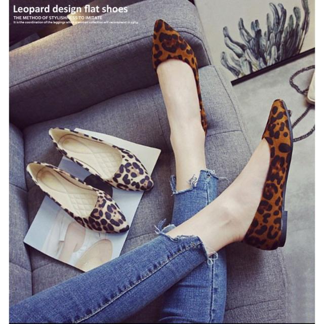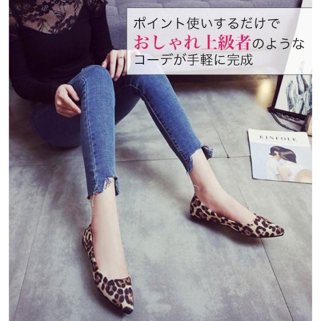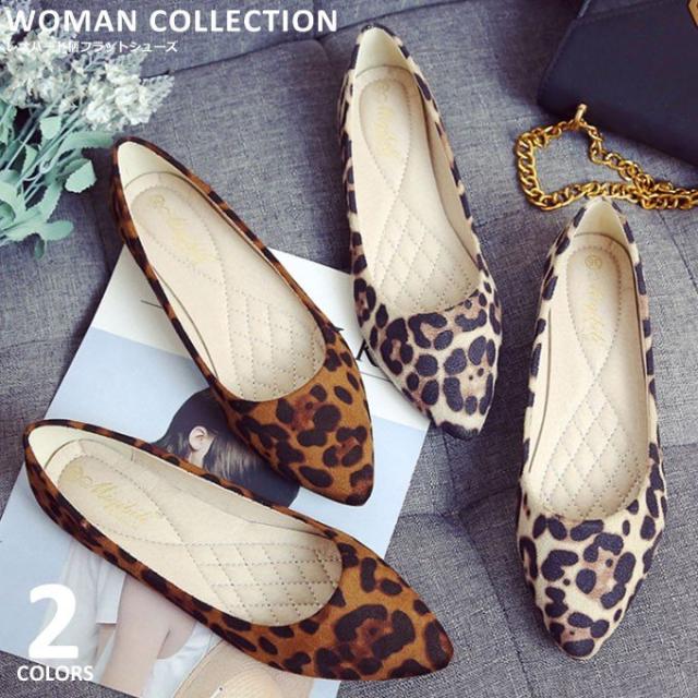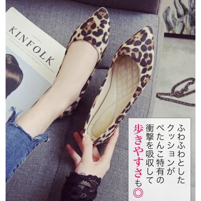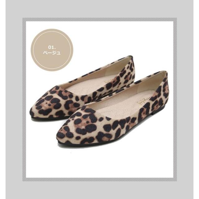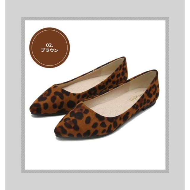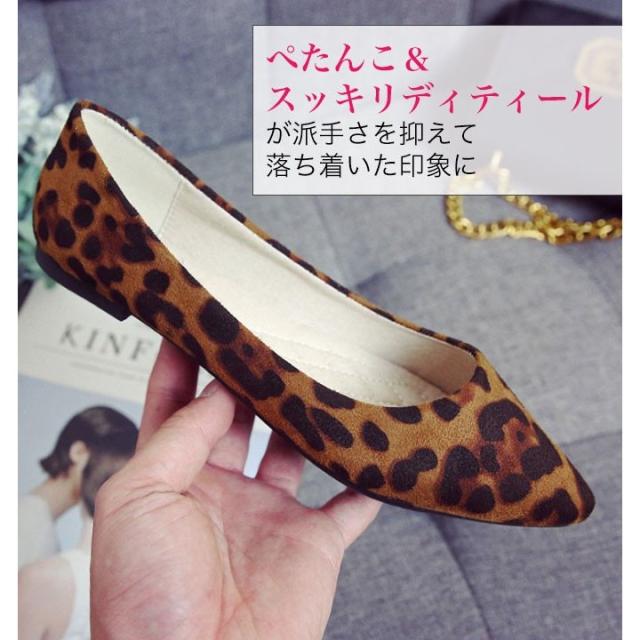 パンプス ぺたんこ レオパード ヒョウ柄 豹柄 ポインテッド フラットシューズ バレエシューズ 秋 秋冬 レディース