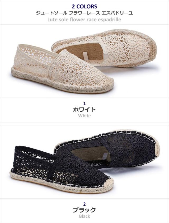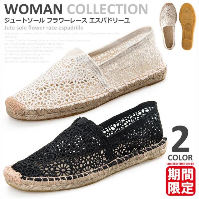 エスパドリーユ レディース 柄 無地 レース 花柄 スリッポン ぺたんこ