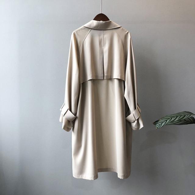 レディース トレンチコート ロングコート オーバーコート ブラック アプリコット シンプル 揺れ感 無地 薄手 通勤 体型カバー