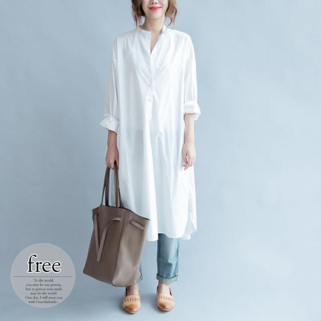 ワンピース 長袖 スリット フロントボタン ホワイト 無地 ドライブ 定番 ディナー 学校行事 カジュアル 女子旅 休日スタイル デート /[ogr61]
