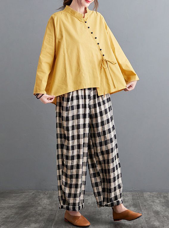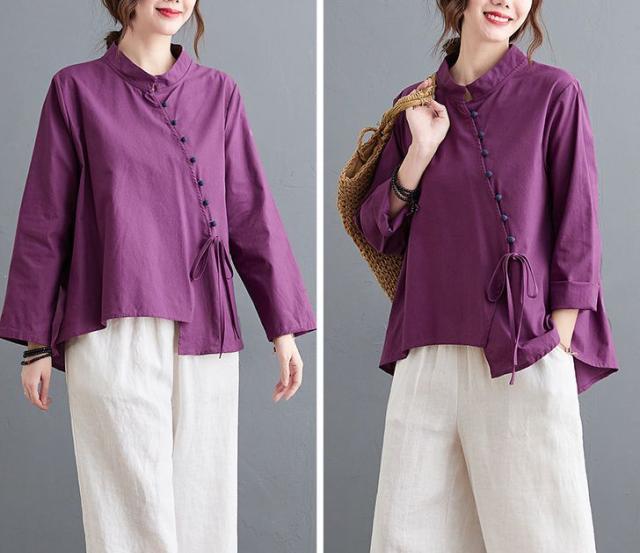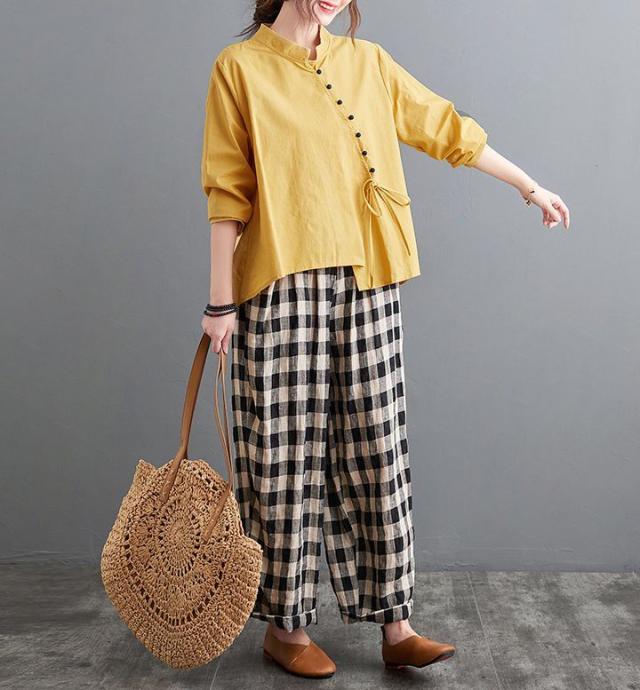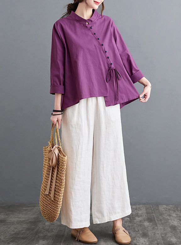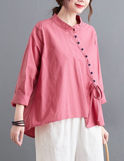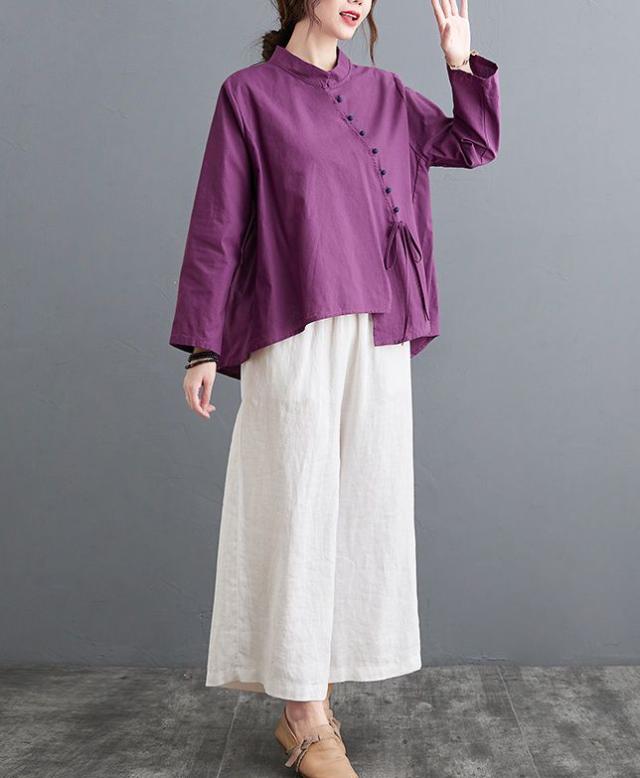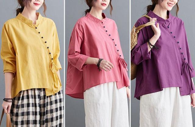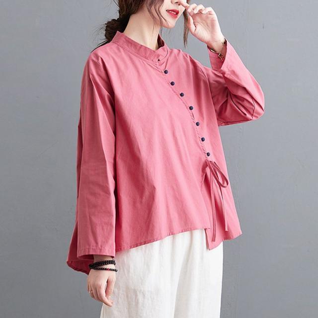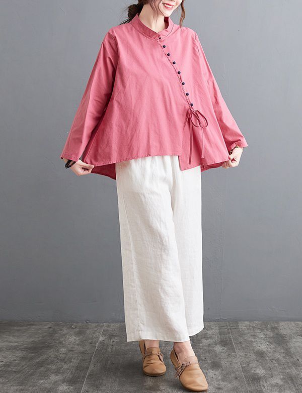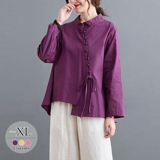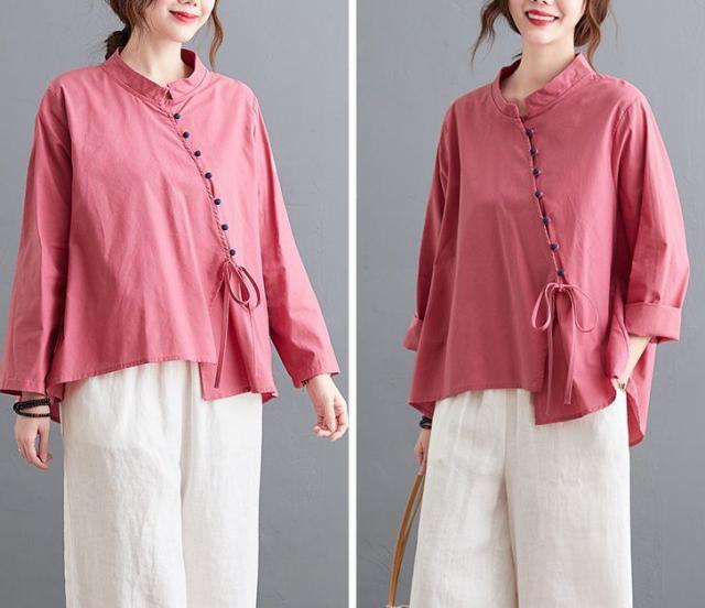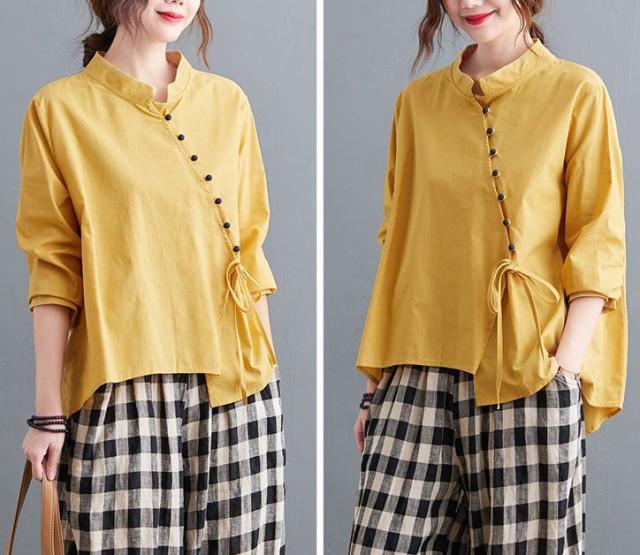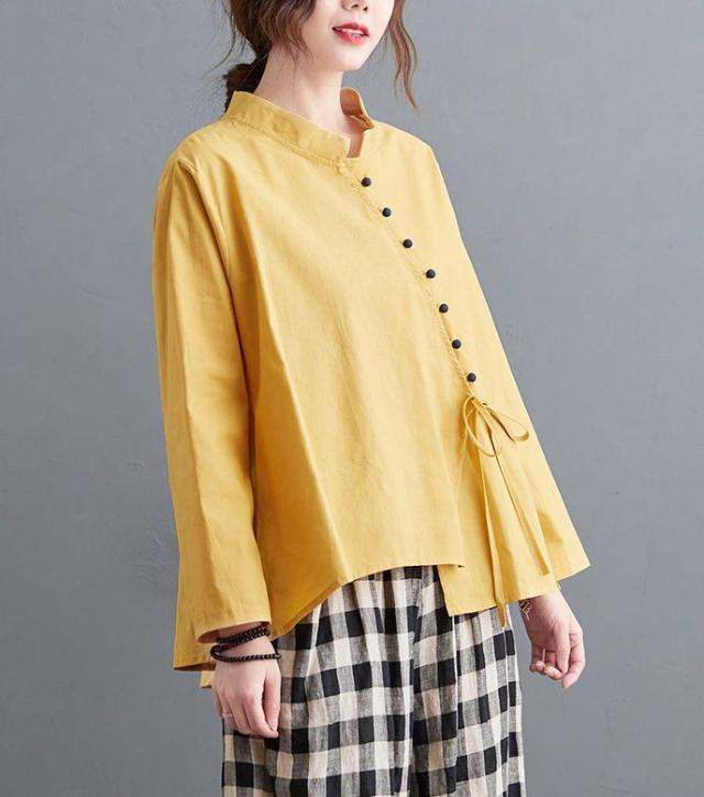 ブラウス 襟付き アシンメトリー ゆったり ボタン リボン デート 女子旅 リゾート カジュアルウェア お出かけ お出かけファッション /[ogs49]