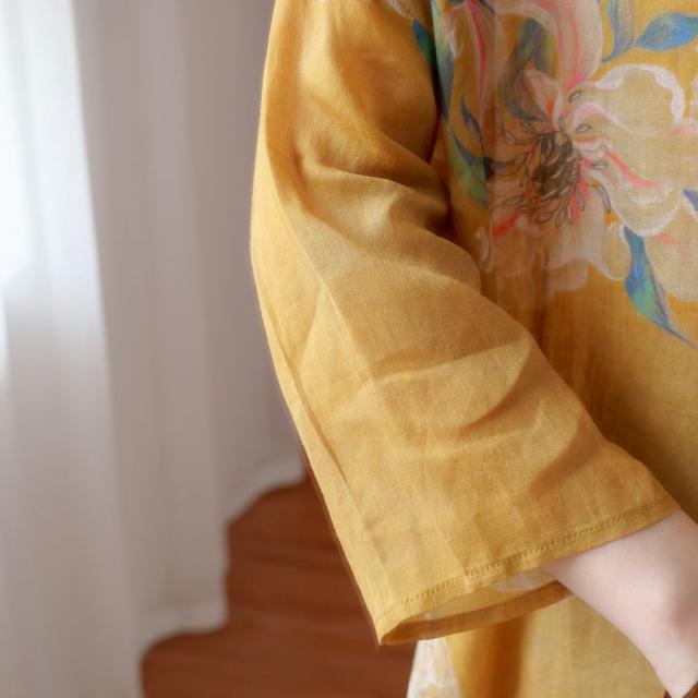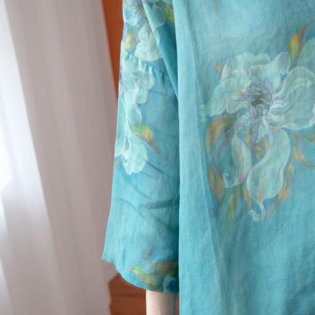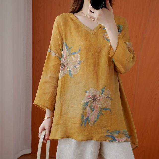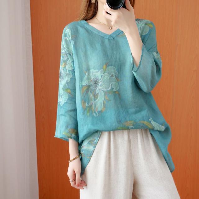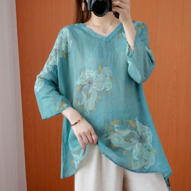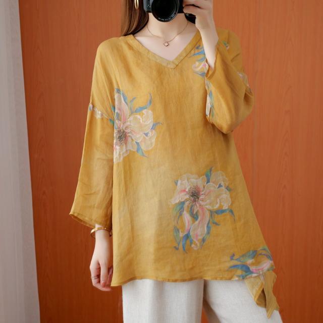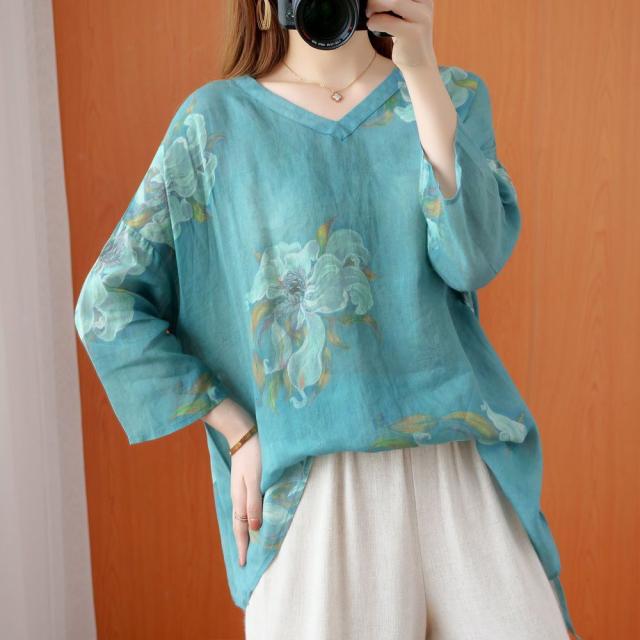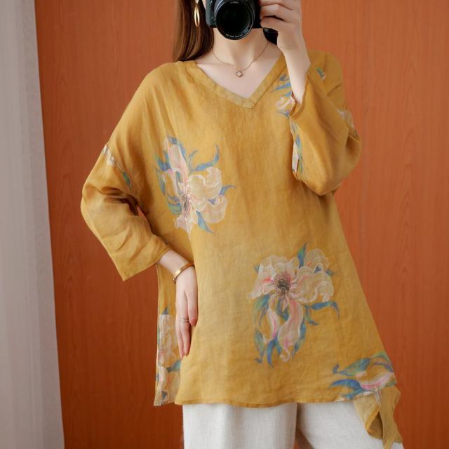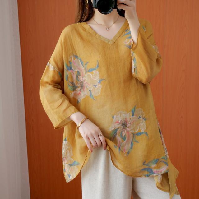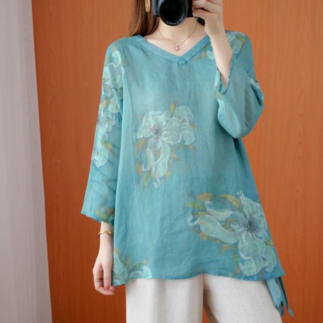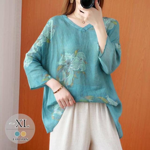 チュニック プリント柄 Vネック 花柄 大人可愛い ガーリー ママスタイル カジュアルウェア リゾート ドライブ お出かけ カジュアル 清楚 /[ogs89]