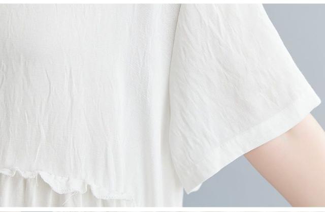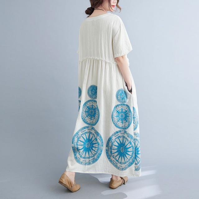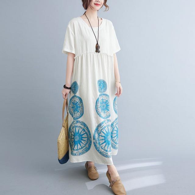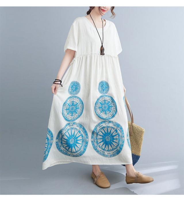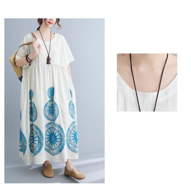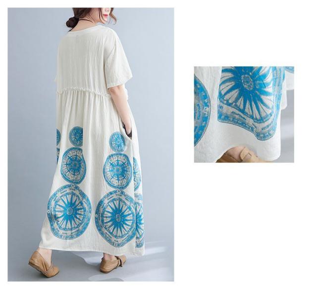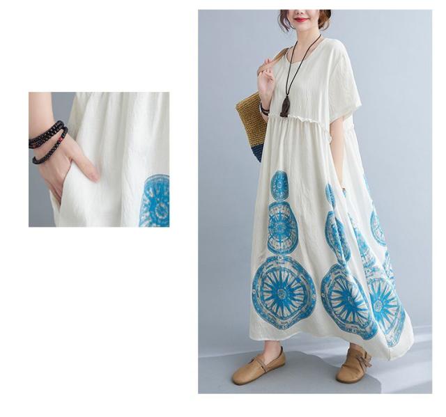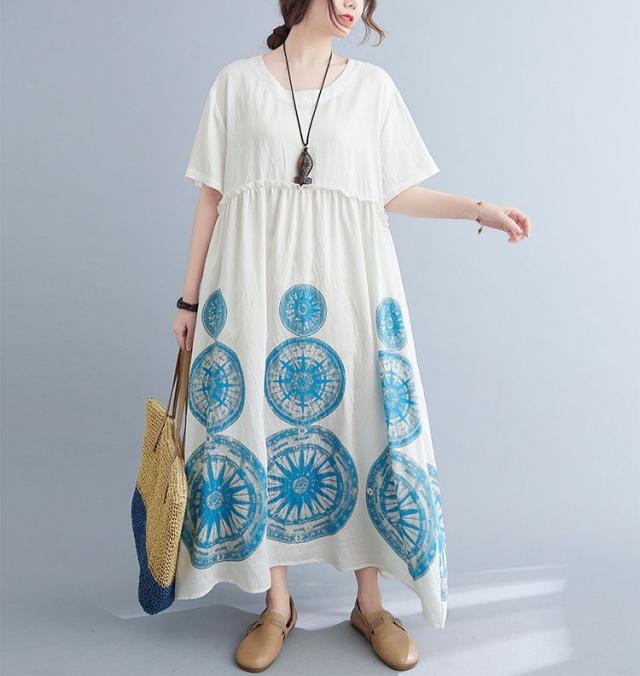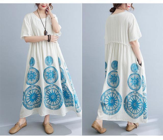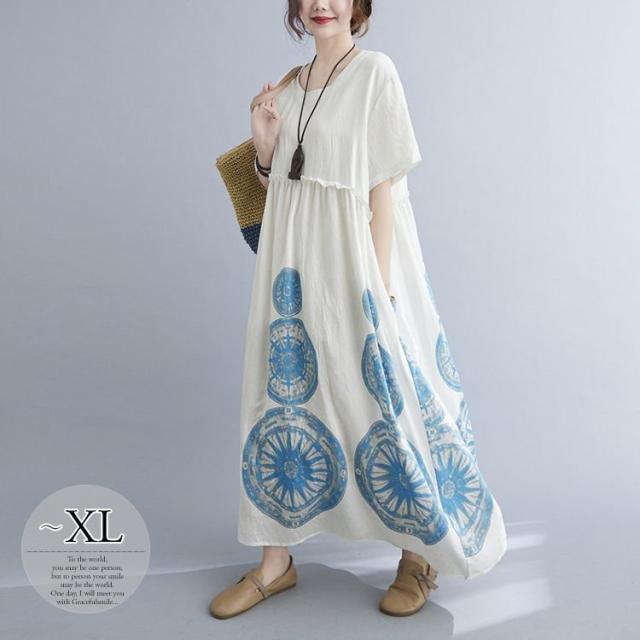 ワンピース ラウンドネック 半袖 ゆったり エスニックスタイル 清楚 お出かけファッション 学校行事 大人可愛い リモート きれいめ カジュアル /[ogt35]