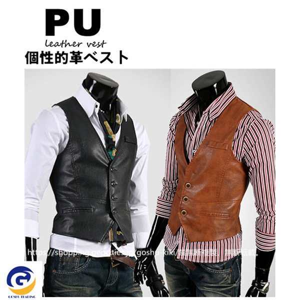 レザーベスト メンズ ベスト PUベスト ジレベスト チョッキ バイク用ベスト 通勤 カジュアル フォーマル 大きいサイズ 本革調