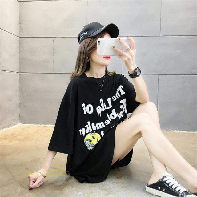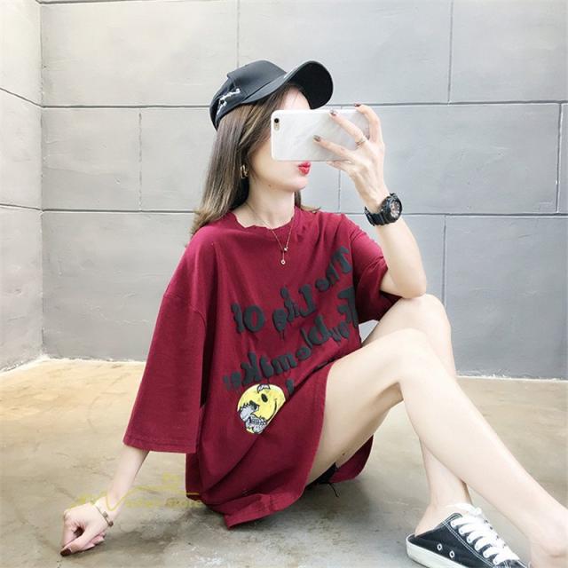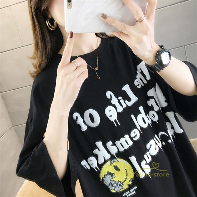 Tシャツ レディーストップス 半袖 ビッグTシャツ プリント クルーネック ゆったり 韓国ファッション 無地 カジュアル 20代30代40代 カシュクール 夏 2021