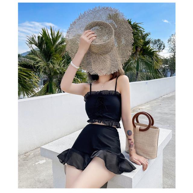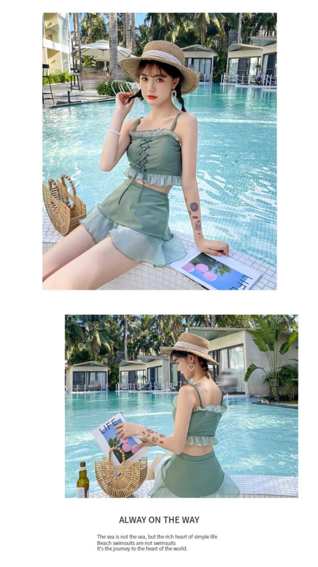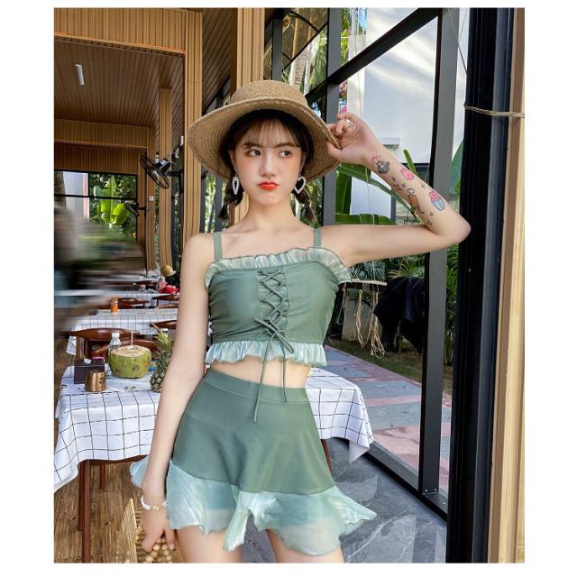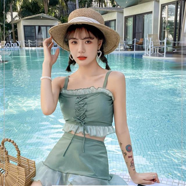 ビキニ 水着 レディース セット フレア ミニスカート 大人 リゾート おしゃれ 上下別柄 シンプル バックシャン ハイウエスト2021夏新作 30代40代65代
