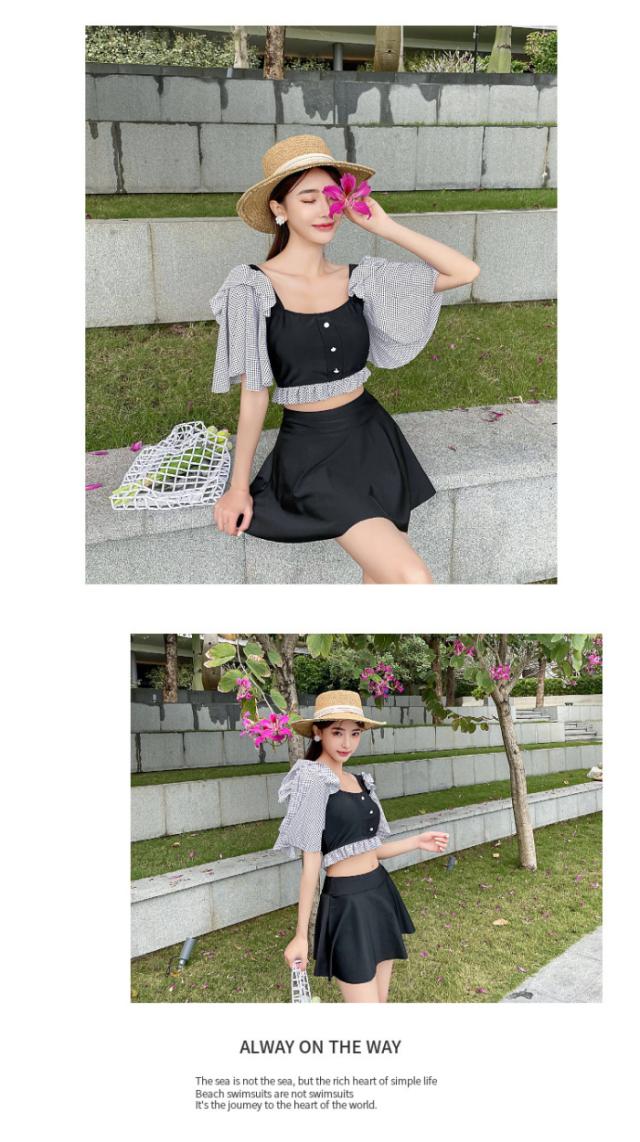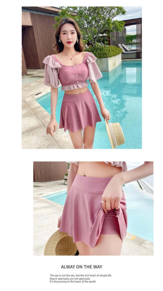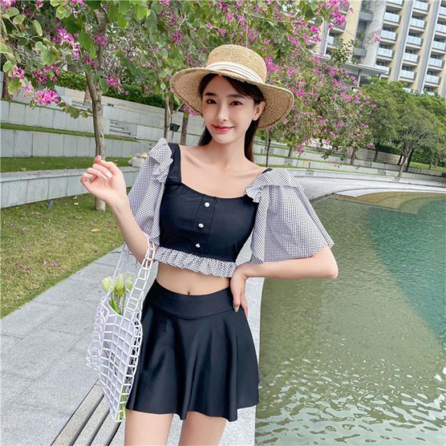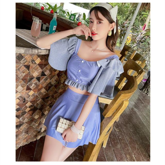 ビキニ 水着 レディース セット フレア ミニスカート 大人 リゾート おしゃれ 上下別柄 シンプル バックシャン ハイウエスト2021夏新作 30代40代71代