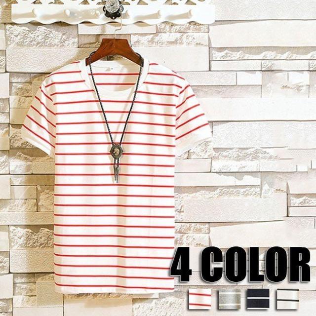 メンズ 夏Tシャツ ボーダー 半袖 Tシャツ トップス メンズTシャツ 夏物 春物 半袖Tシャツ カジュアル ボーダー柄 メンズ 4色