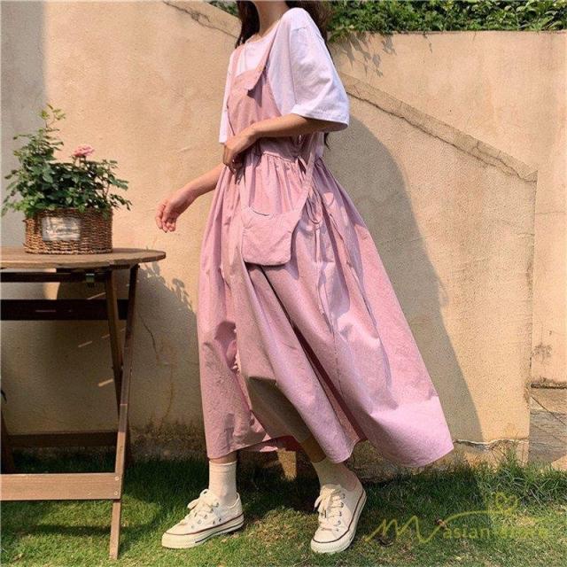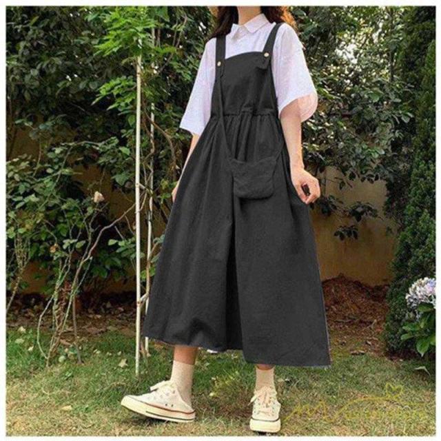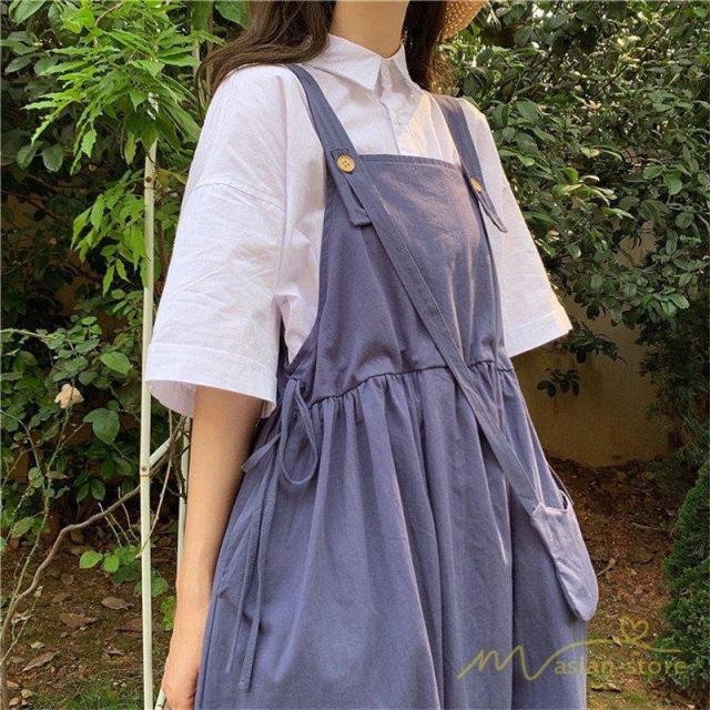 ワンピース ジャンパースカート ロング レディース インナー ノースリーブ キャミワンピース ポケット付 キャミワンピース 可愛い フレア ガーリー 春夏コーデ