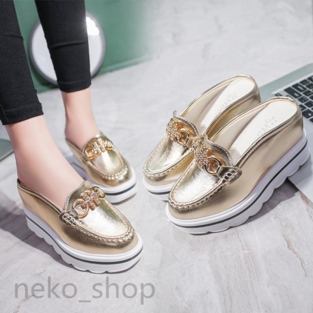 ビット付きミュール レディース スリッパサンダル かかとなし 3色 ウェッジソールサンダル バブーシュ インヒール ミュール 歩きやすい 美脚 大人/学生 春夏
